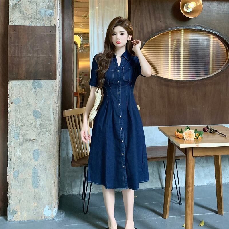 プラスサイズの婦人服 2023 流行の夏の新しい脂肪ファッショナブルなデニムドレスデザインファッショナブルなスリムロングスカート 大きめサイズ サマー 夏物 8884186308468540