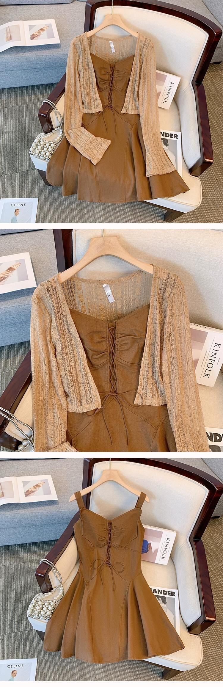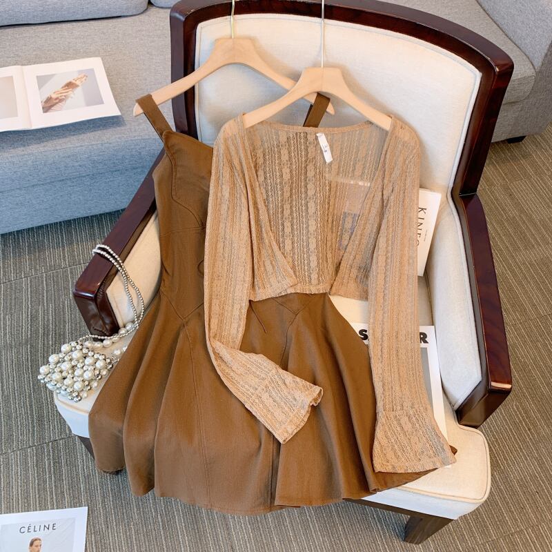 プラスサイズの婦人服 2023 脂肪姉妹夏の新ファッション年齢低減スーツスリムサスペンダースカートニットカーディガン 2 点セット 大きめサイズ サマー 夏物 8884164596029825