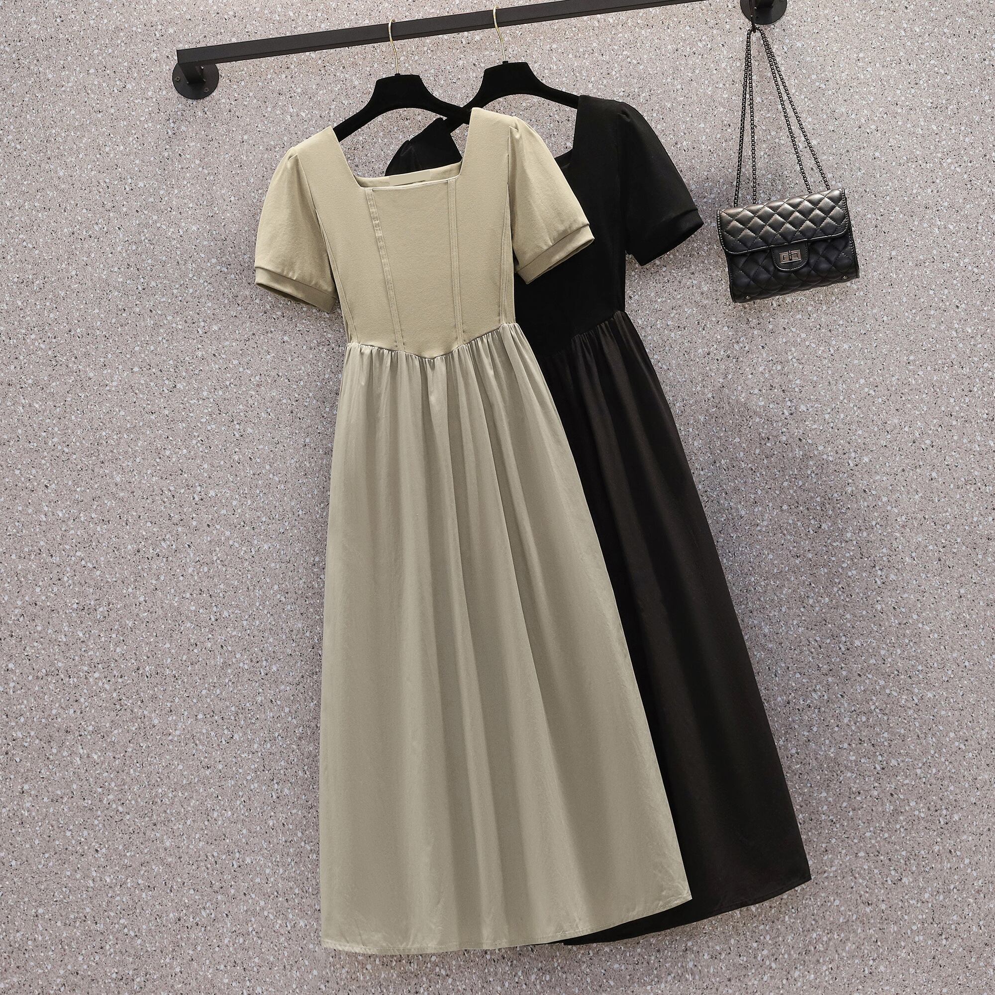 プラスサイズの婦人服 2023 脂肪姉妹夏の新ファッション痩身フランスの気質デザインロングスカート痩身ドレス 大きめサイズ サマー 夏物 8884154321654393