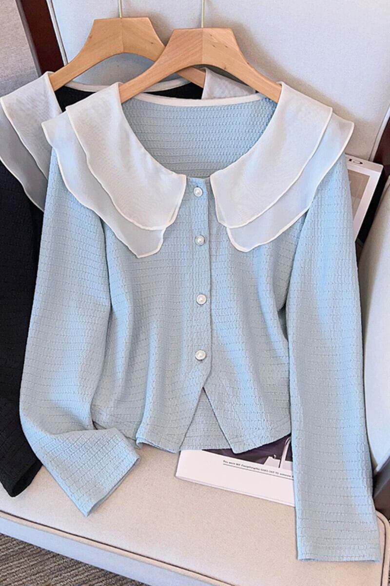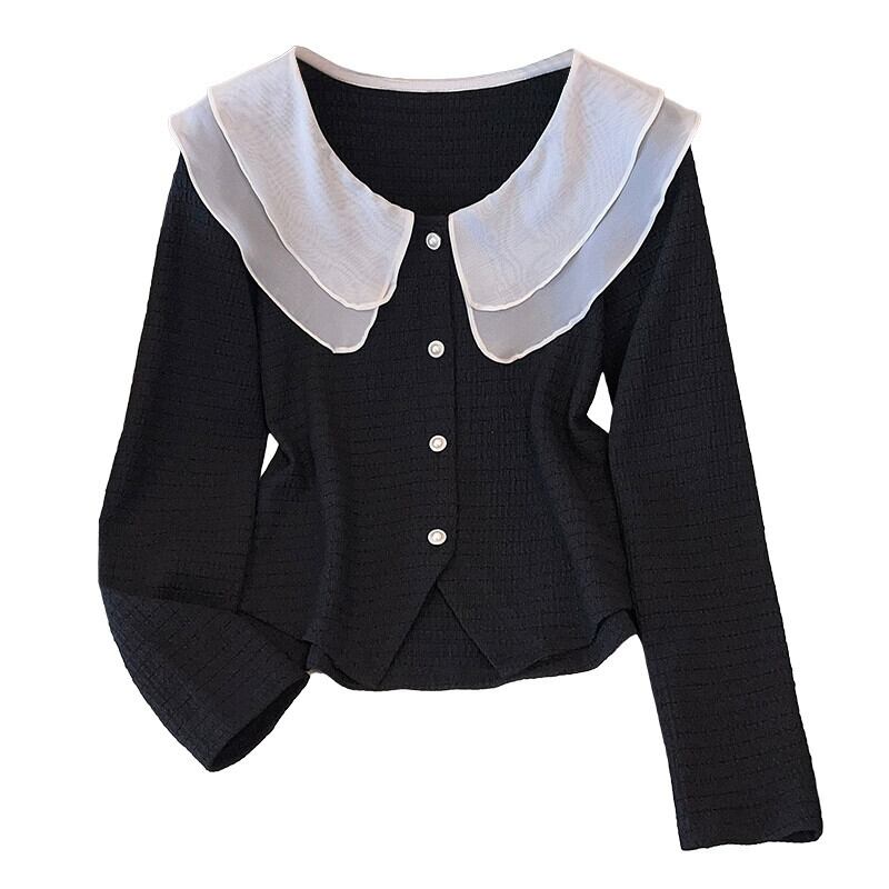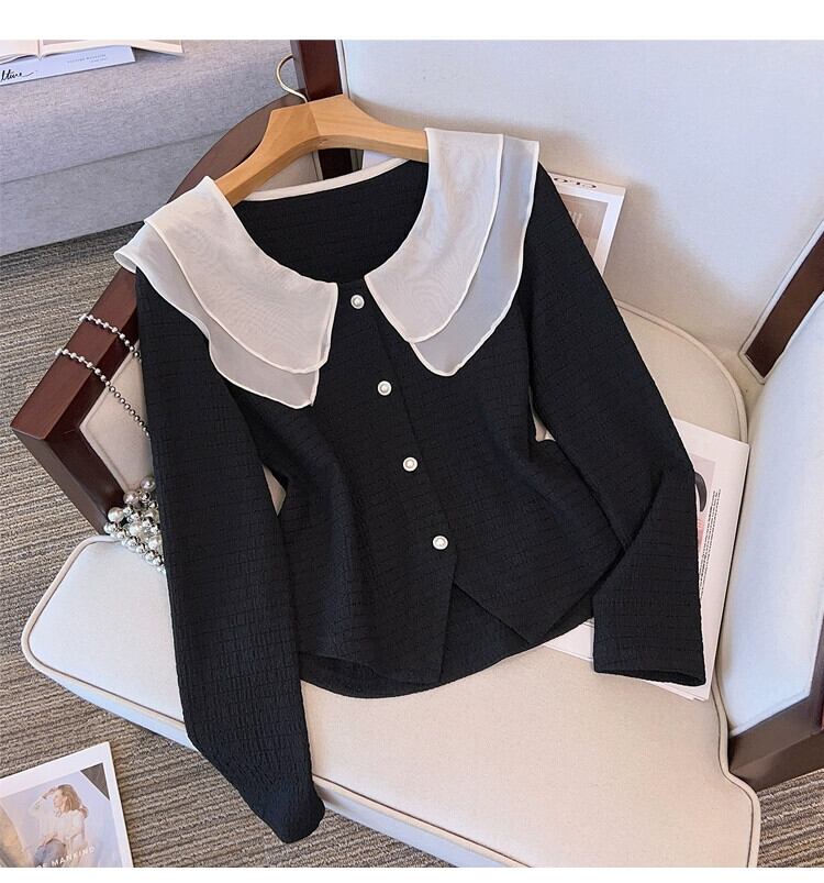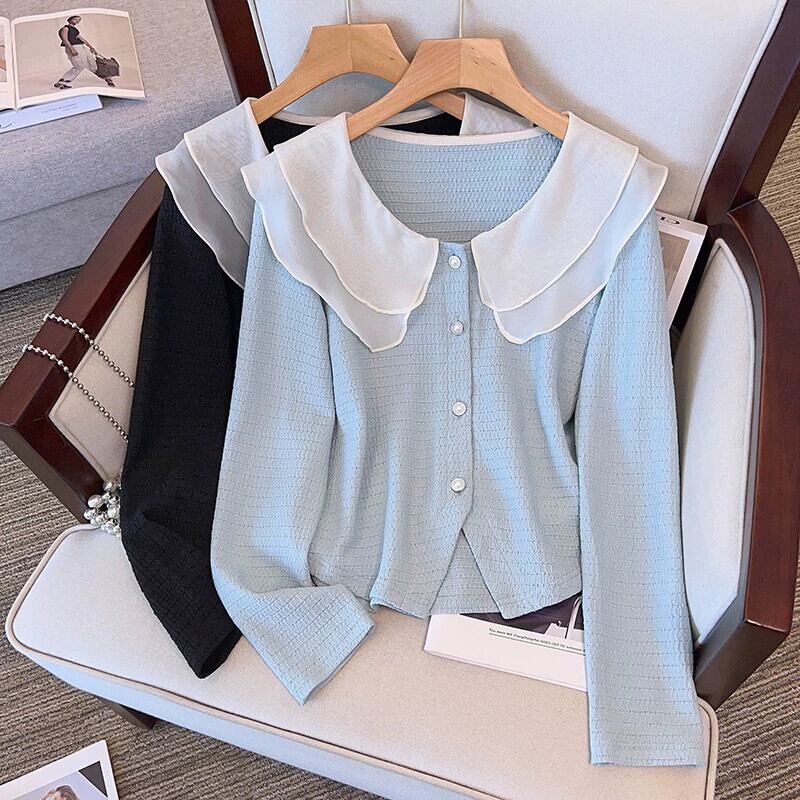 プラスサイズの婦人服 2023 流行の秋の新ファットシスターファッション人形襟トップカーディガン長袖スタイル年齢軽減ジャケット ロング 大きめサイズ オータム 秋物 8884198997123494