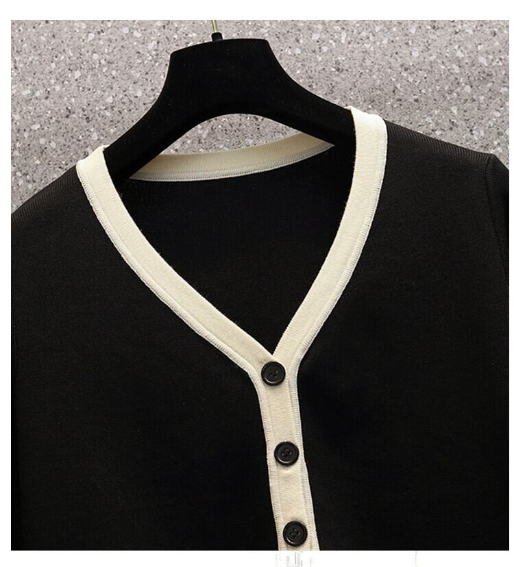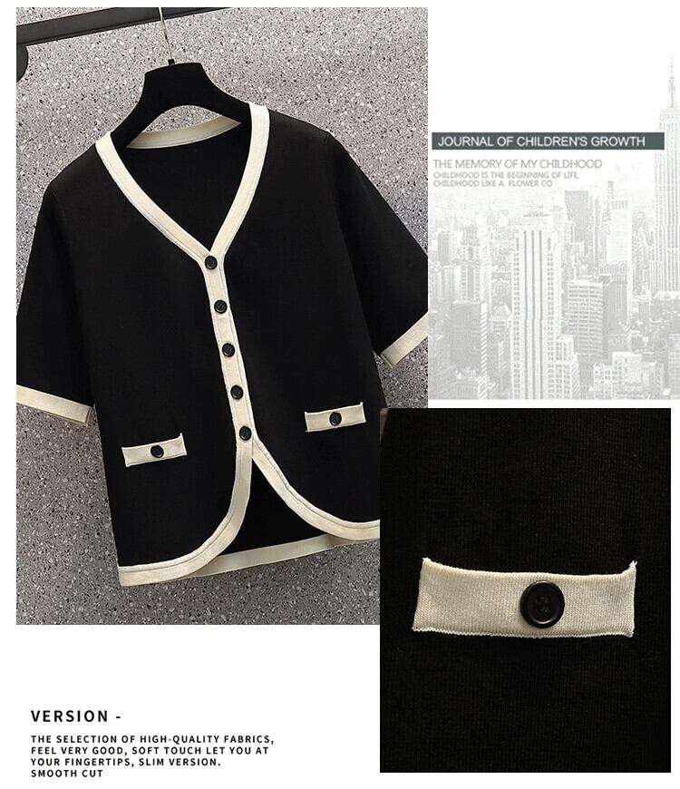 プラスサイズの婦人服 2023 ファットシスター夏新色コントラストニット半袖 tシャツ V ネック薄いカーディガントップ女性 大きめサイズ サマー 夏物 Vネック 8884110893704263