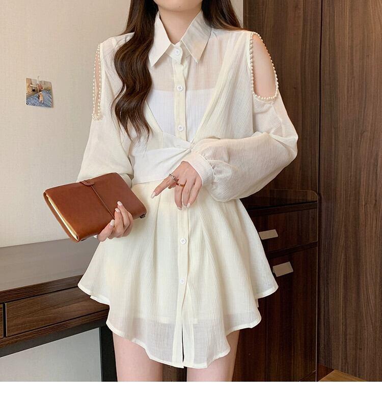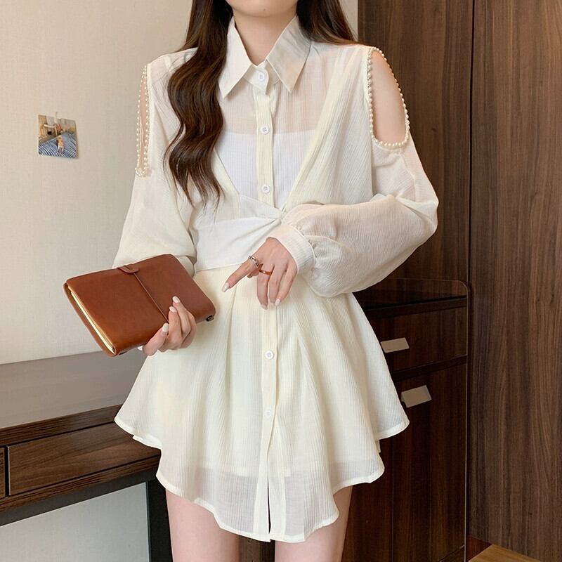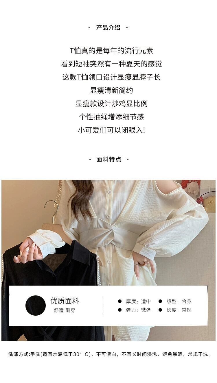 プラスサイズの婦人服 2023 脂肪姉妹夏の新ファッションスーツスリムオフショルダー日焼け防止シャツショーツツーピーススーツ 大きめサイズ サマー 夏物 ブルマー 8884113757629040