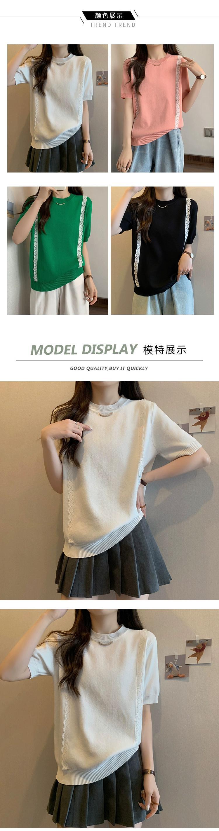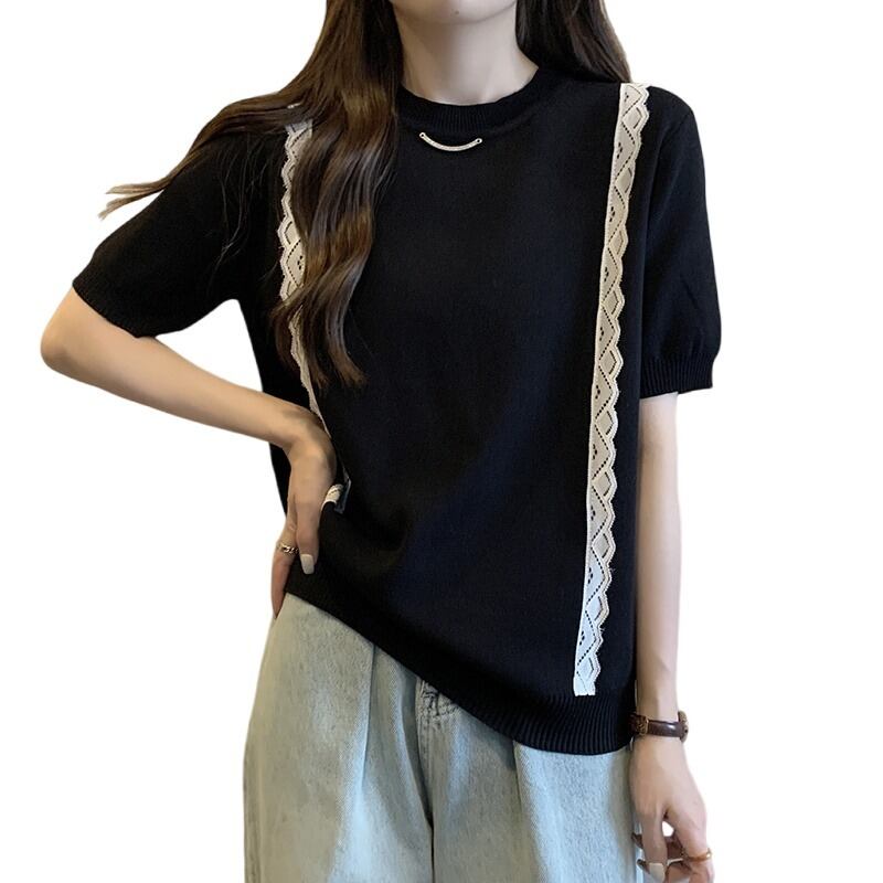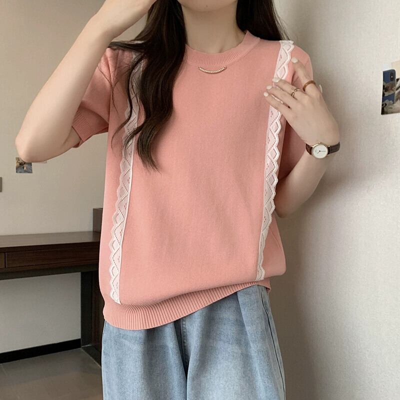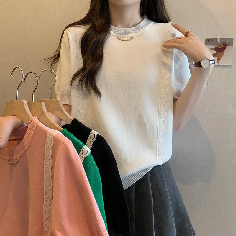 プラスサイズの婦人服 2023 流行の女性の夏の新しいスタイルファットシスターファッショナブルなレースニット半袖多用途カーディガン T シャツ 大きめサイズ サマー 夏物 Tシャツ 8884130020060519