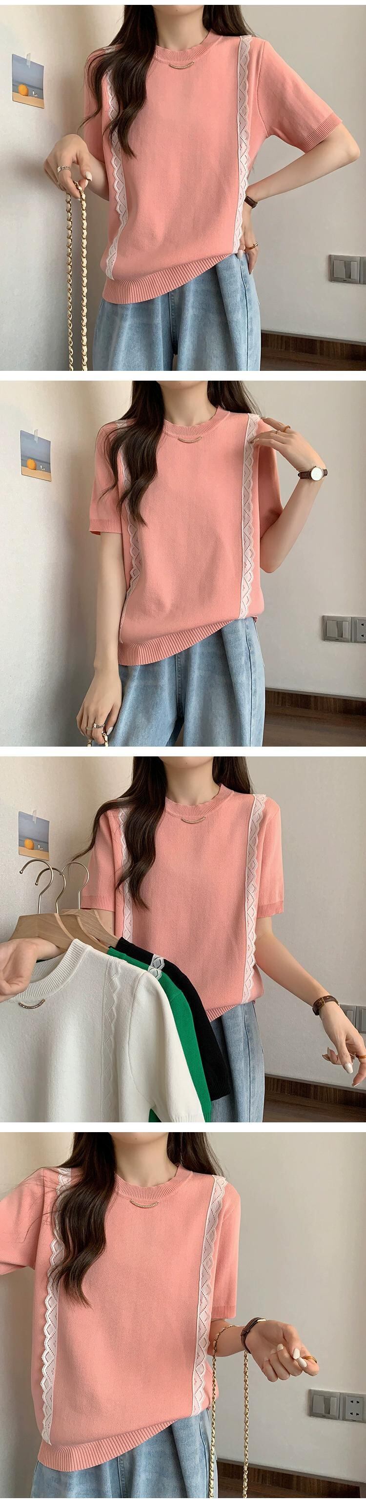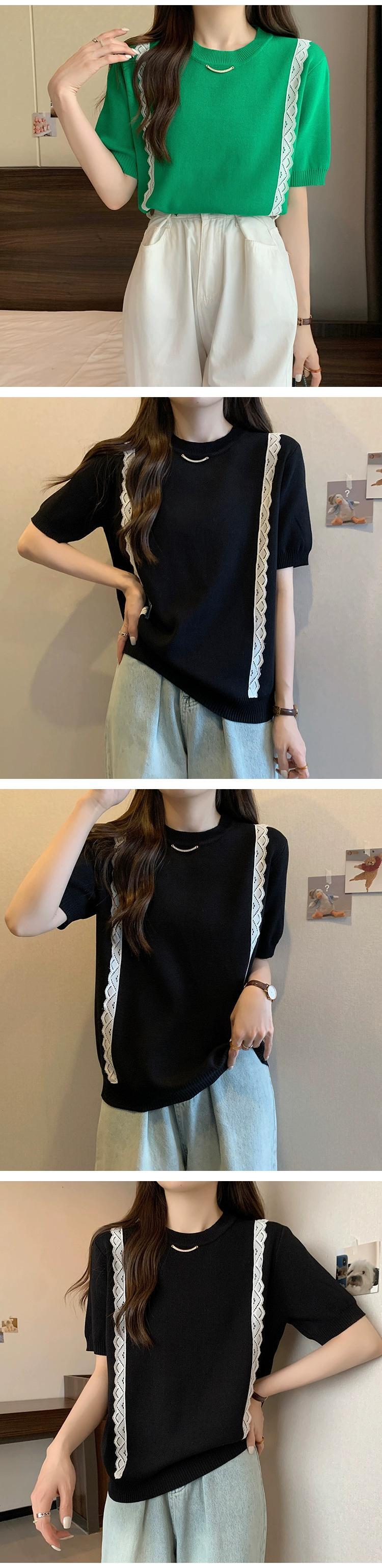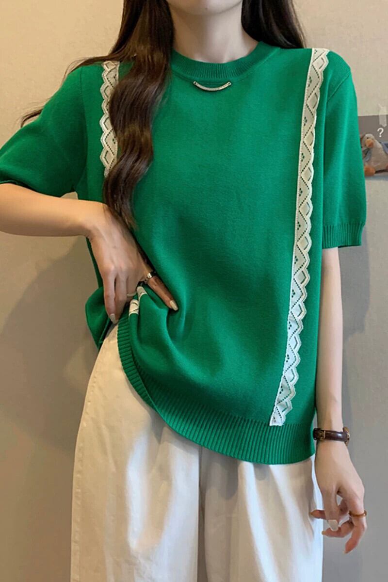 プラスサイズの婦人服 2023 流行の女性の夏の新しいスタイルファットシスターファッショナブルなレースニット半袖多用途カーディガン T シャツ 大きめサイズ サマー 夏物 Tシャツ 8884130020060519