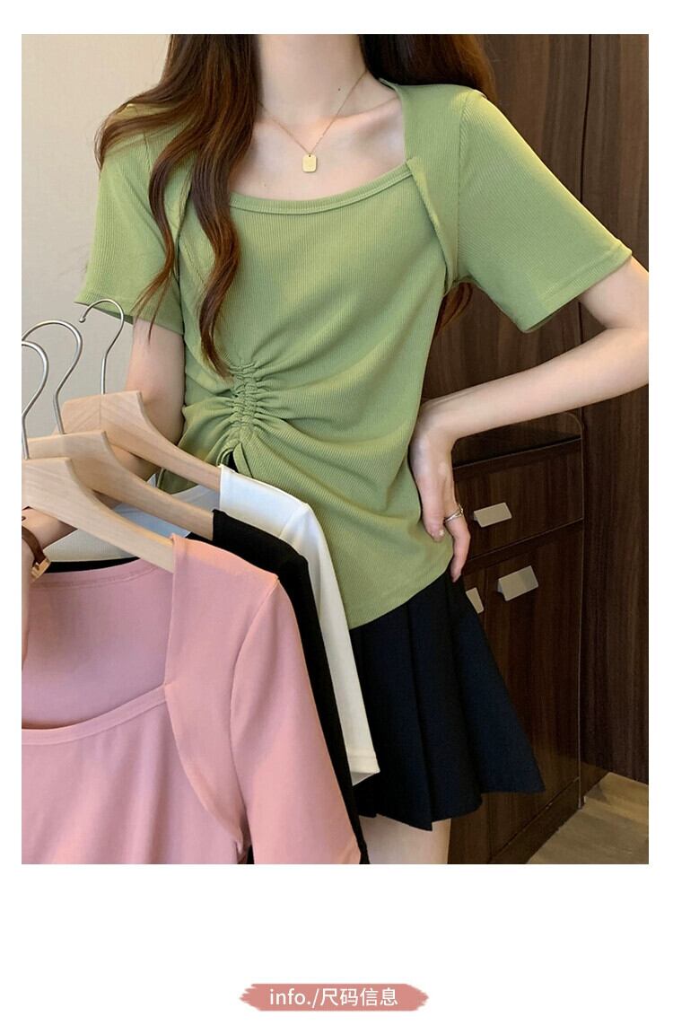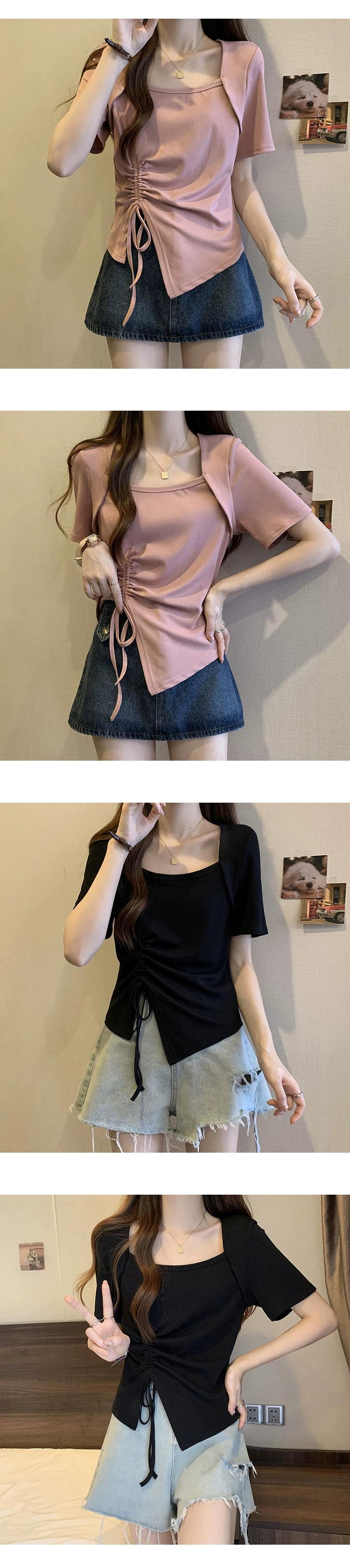 プラスサイズの女性の 2023 ファットシスターサマースタイル多用途非対称巾着プリーツ女性らしさを示す半袖 Tシャツトップス ショート 半袖 ハーフスリーブ 大きめサイズ 夏物 888413261641019