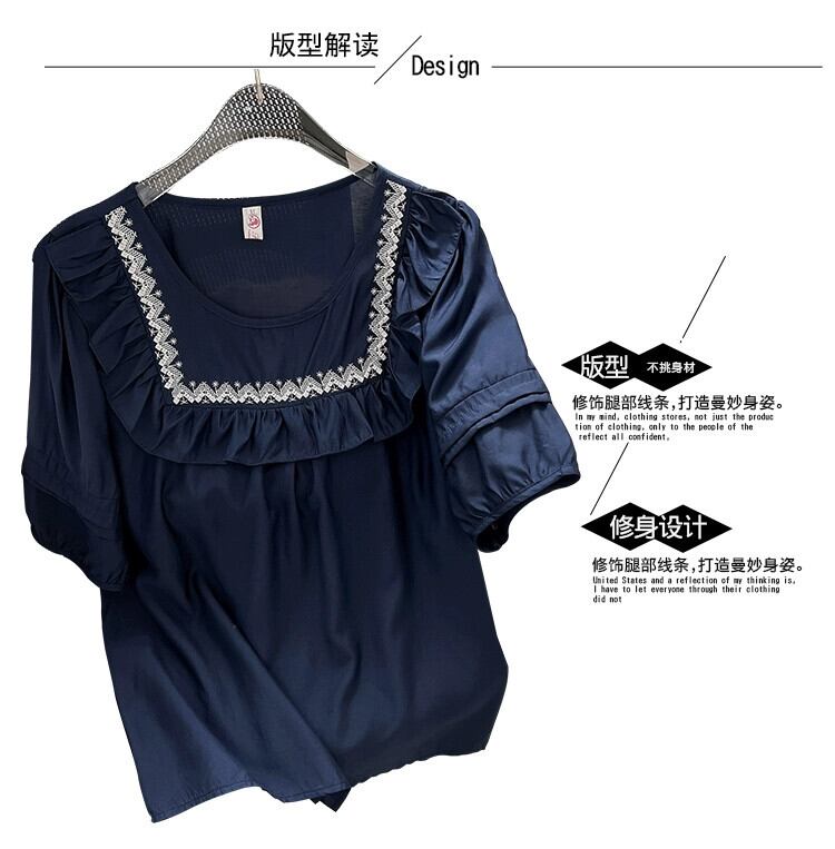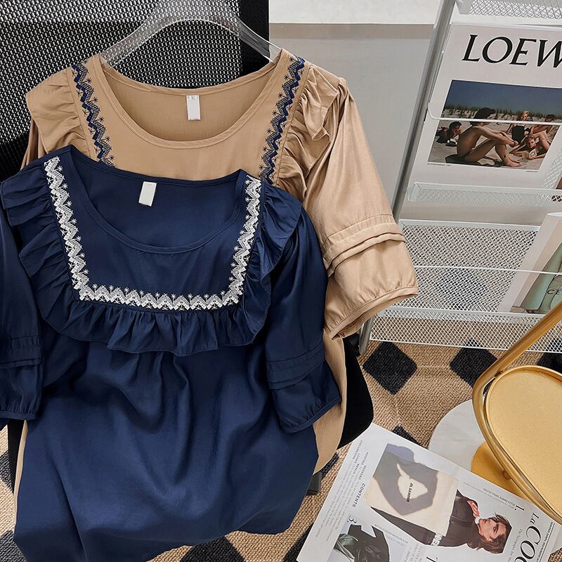 プラスサイズの女性の 2023 ファットシスター夏服ルーズ西洋スタイルニッチ年齢削減半袖 Tシャツトップス ショート ハーフスリーブ 大きめサイズ サマー 夏物 8884110019942808