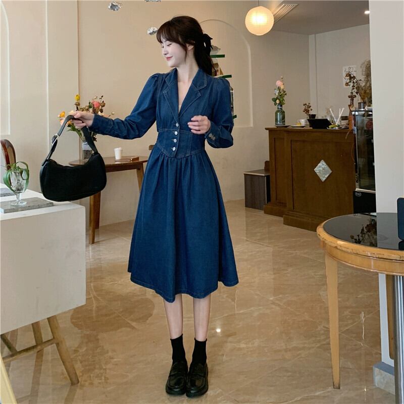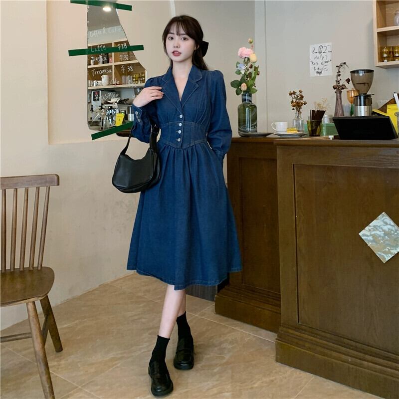 プラスサイズの婦人服 2023 トレンディな秋の新ファットシスターレトロ気質デニムドレススリムファッション多用途ロングスカート 大きめサイズ オータム 秋物 8884132392500309