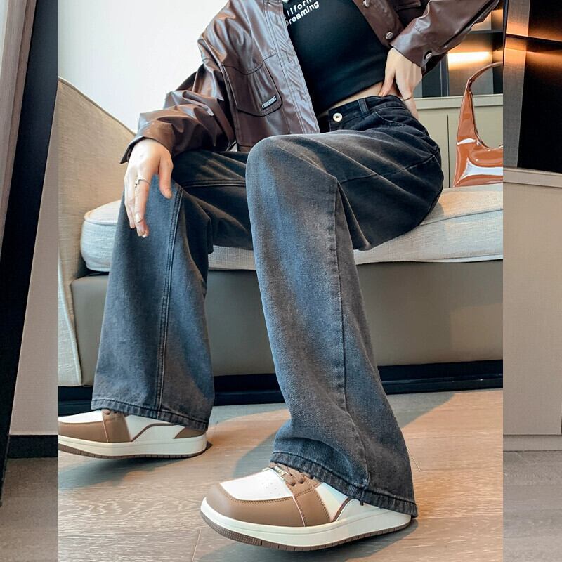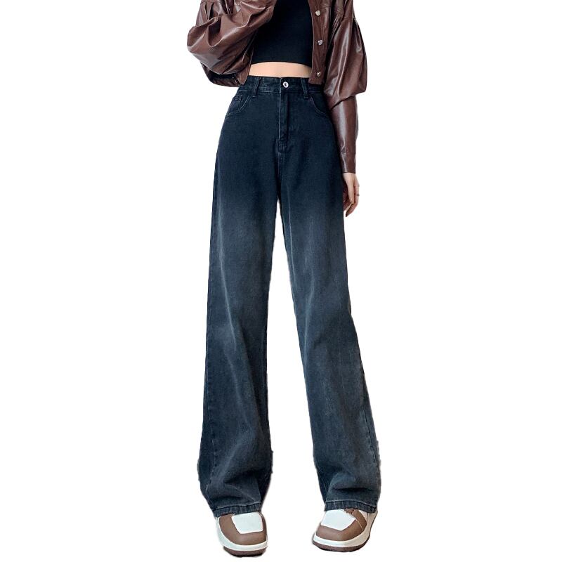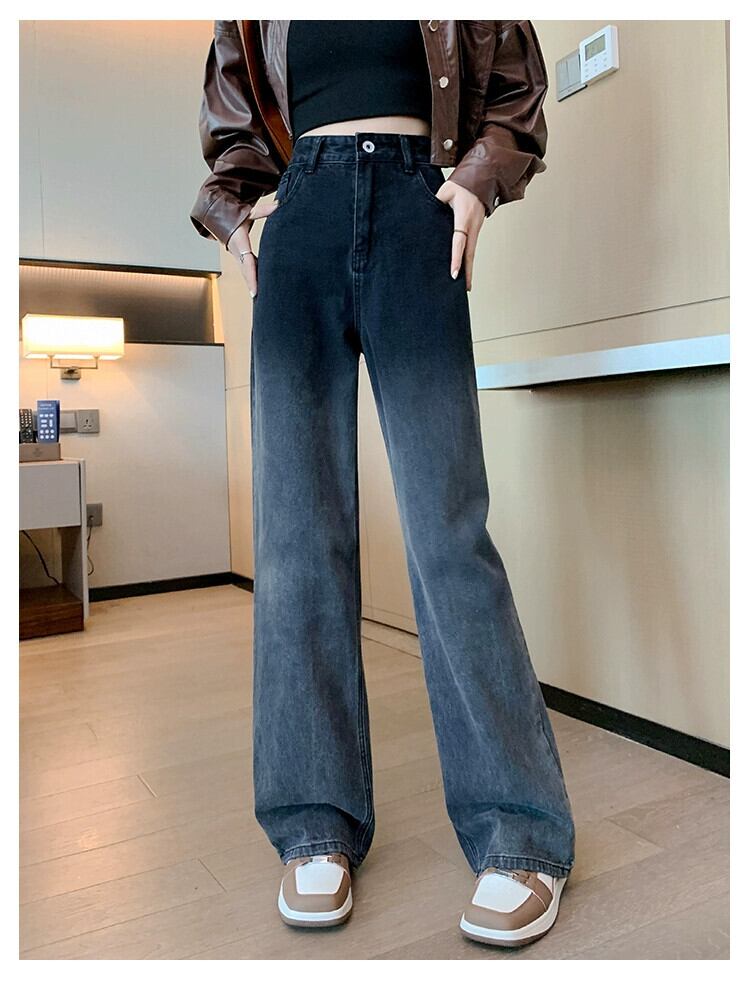 プラスサイズの女性の 2023 ファットシスター秋のグラデーションワイドレッグジーンズ半弾性ウエスト多用途スリムパンツ エラスティック 伸縮 大きめサイズ オータム 秋物 ワイドパンツ 8884192597561546