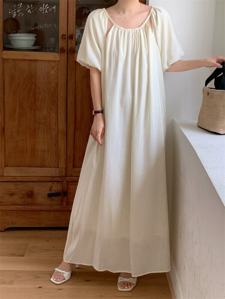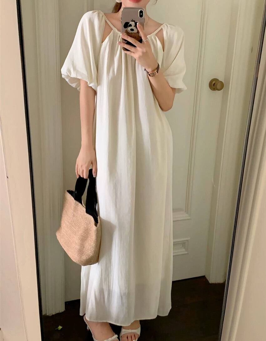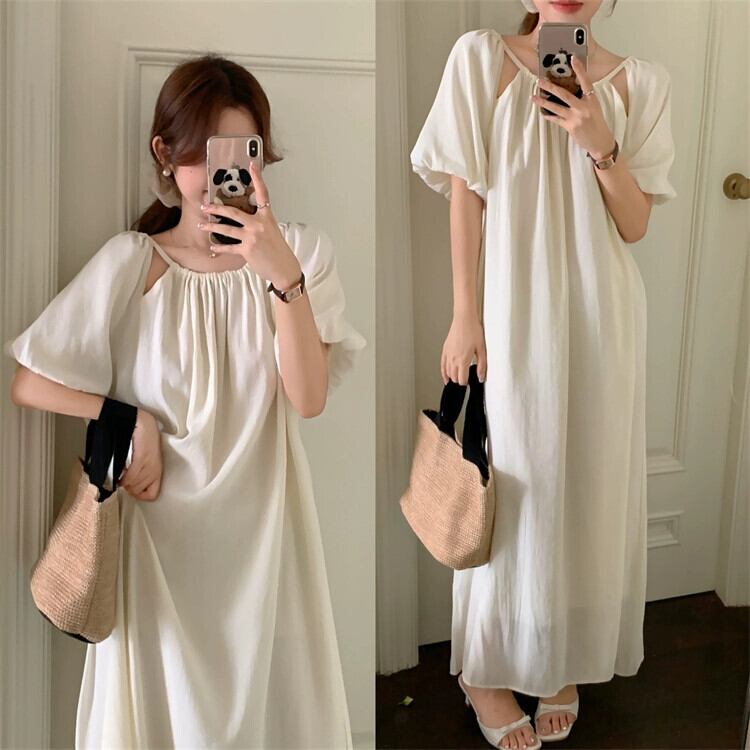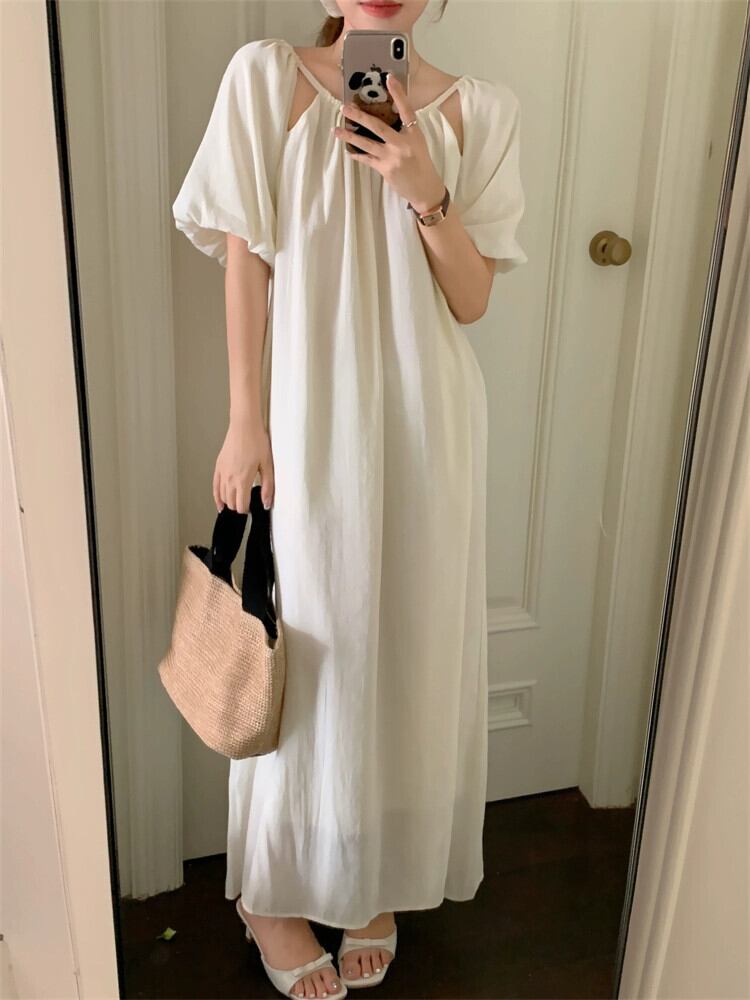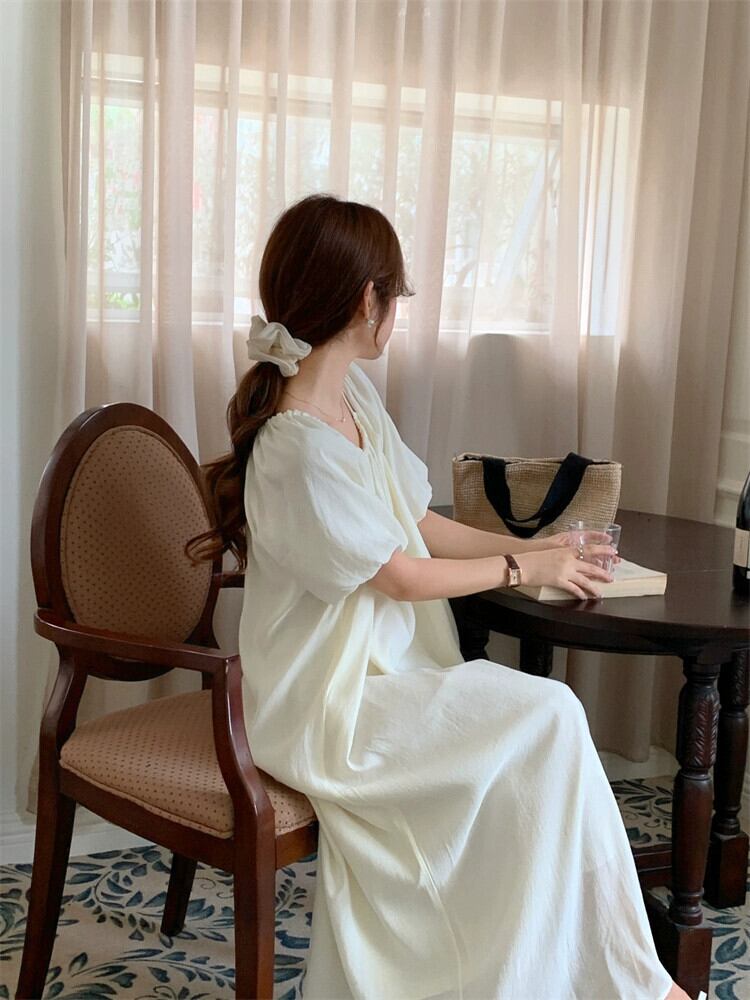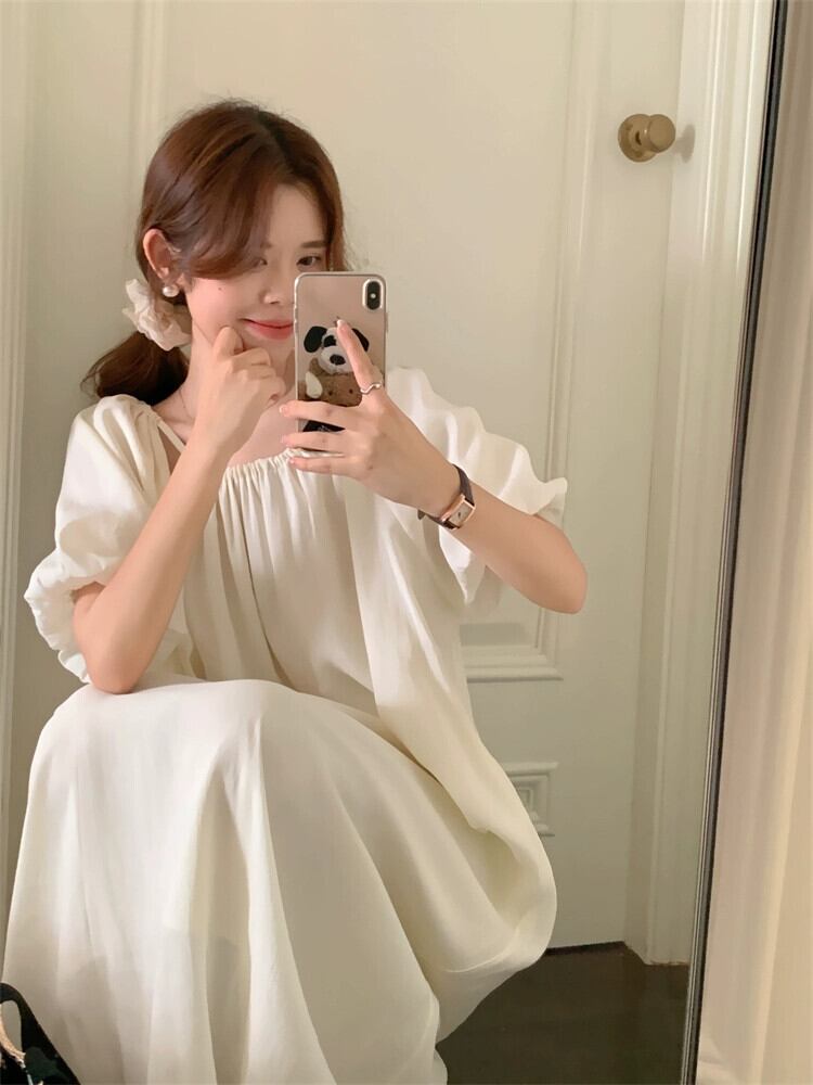 プラスサイズの婦人服 2023 太った妹の夏の新しいフランスの半袖ロング スカート、年齢を減らす、緩い気質とスリムなドレス 大きめサイズ サマー 夏物 8884192143893575