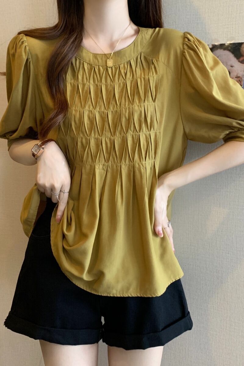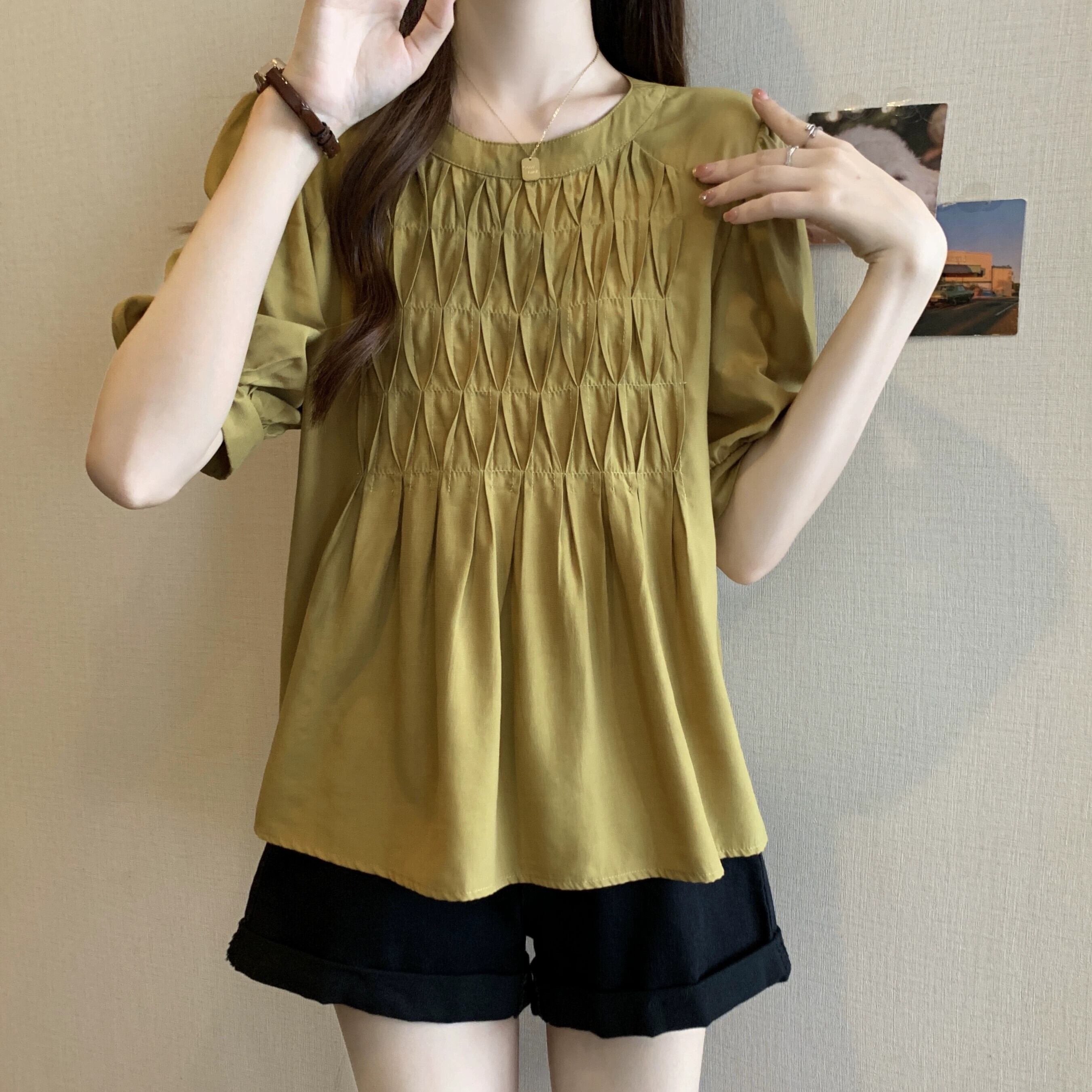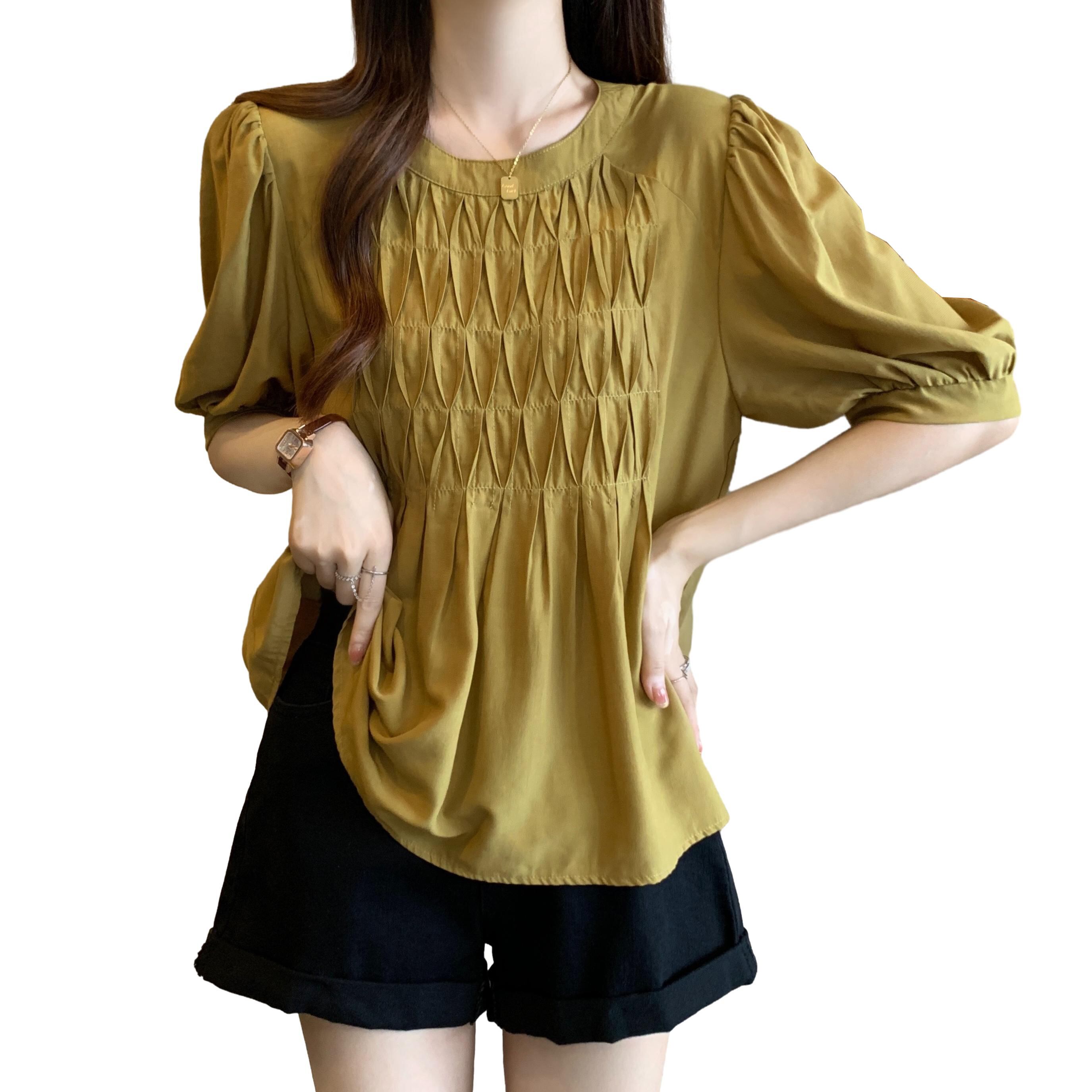 プラスサイズの婦人服 2023 ファットシスター夏服新デザインのフレンチショルダーシャツは肉をカバーし、スリムに見えるニッチトップス 大きめサイズ サマー 夏物 8884152192182705