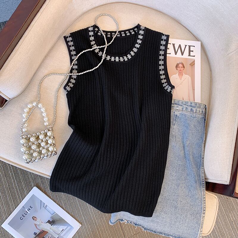 プラスサイズの女性の 2023 夏服ファットシスターズ年齢削減キャミソールノースリーブ底シャツニットトップ 大きめサイズ サマー 夏物 8884137314784542