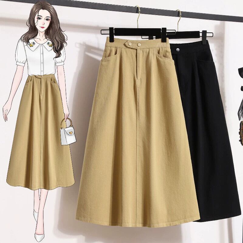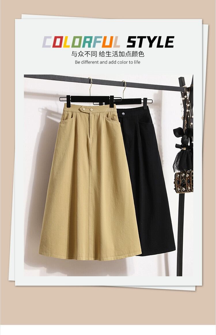 プラスサイズの女性の 2023 新作夏のワークウェア デニム スカートは股間をカバーし、スリムに見えるソリッド カラーの年齢を軽減するウォッシュ A ライン スカート 大きめサイズ サマー 夏物 Aライン ソリッドカラー 8884154707718709