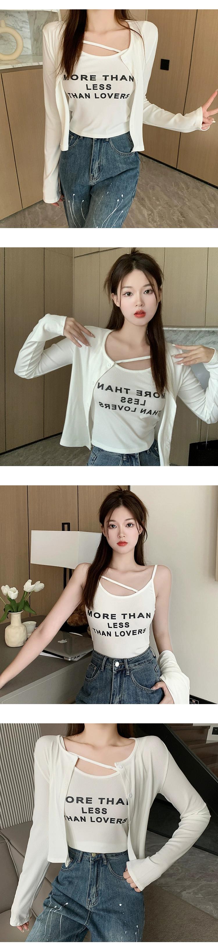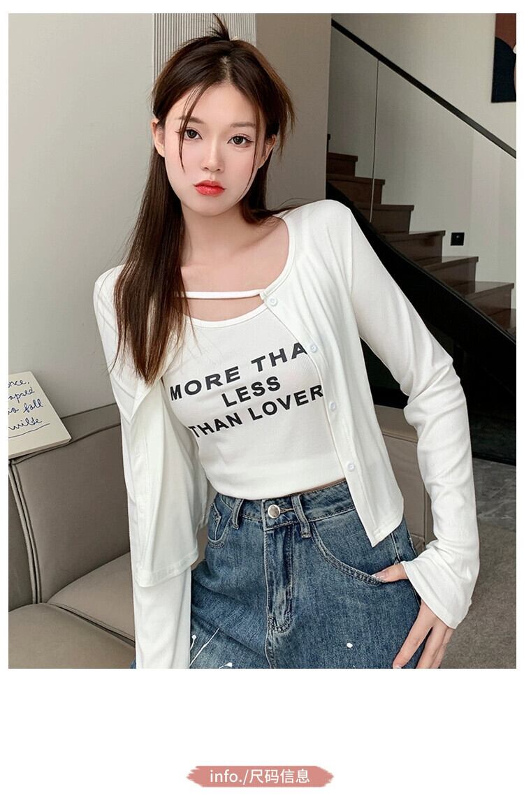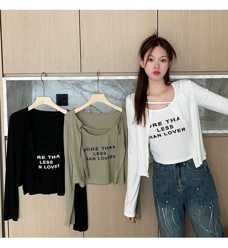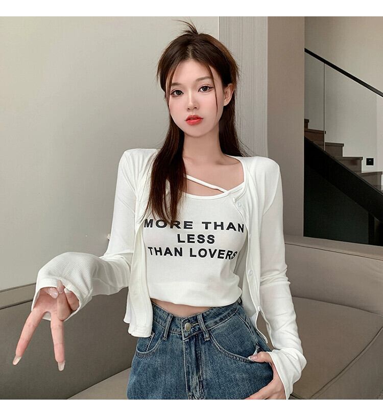 プラスサイズの婦人服 2023 ファットシスター秋の新ファッションカーディガン長袖トップレタープリント小さなベスト 2 点セット ロング 大きめサイズ オータム 秋物 8884142205201854