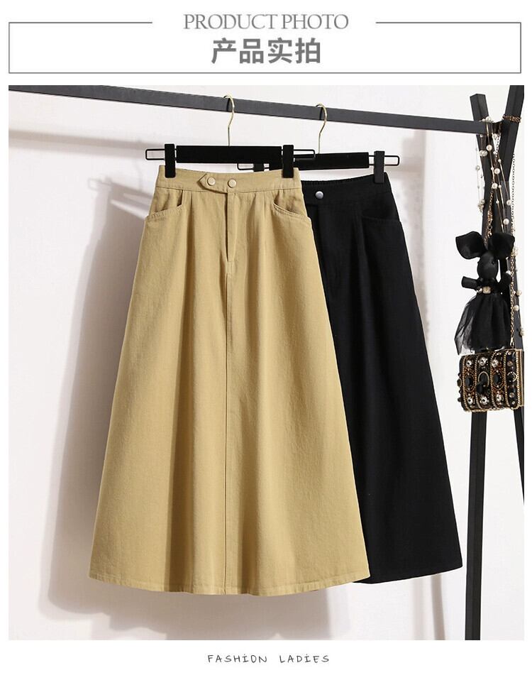 プラスサイズの女性の 2023 夏の新スタイルハイウエスト痩身ミッドレングススカート脂肪腹をカバーし、年齢を減らす A ラインスカート 大きめサイズ サマー 夏物 Aライン 8884117306572319