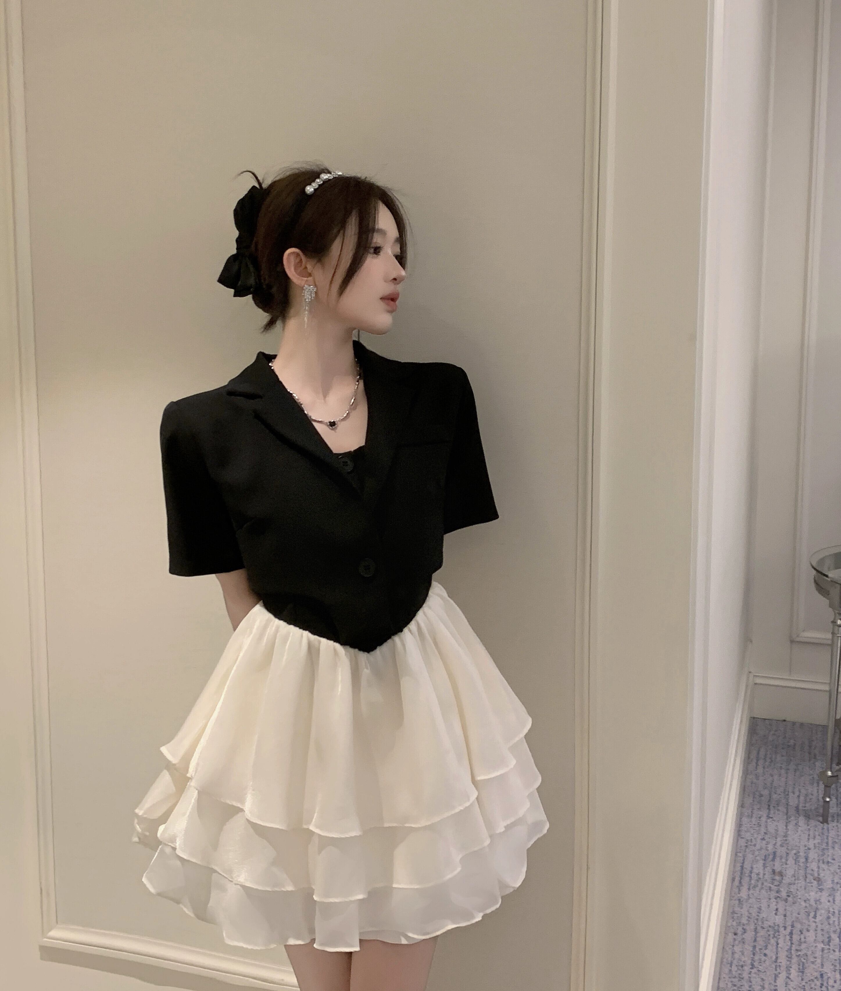 プラスサイズの婦人服 2023 ファットシスター夏新ハイエンドスーツサスペンダースカート弓スーツジャケット 2 点セット リボン 大きめサイズ サマー 夏物 8884153253031833