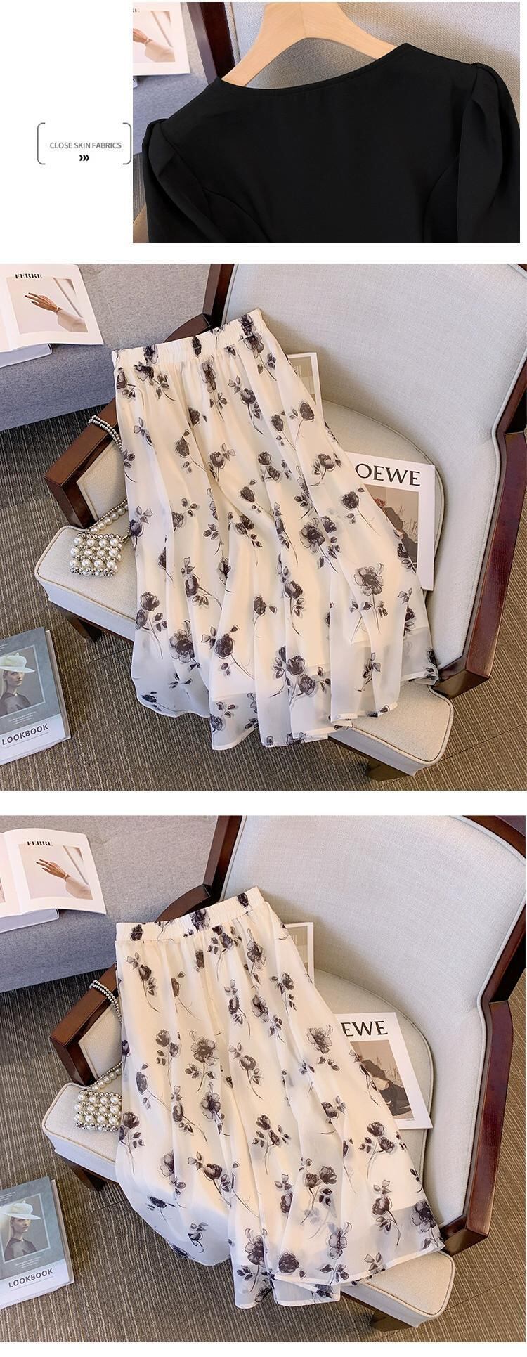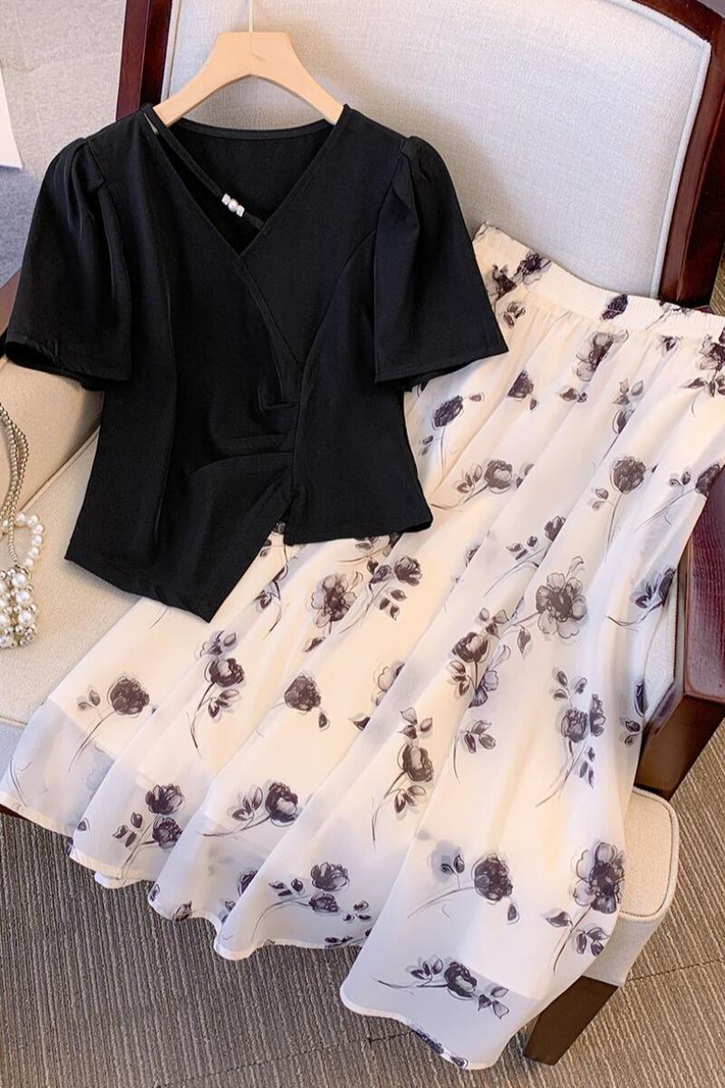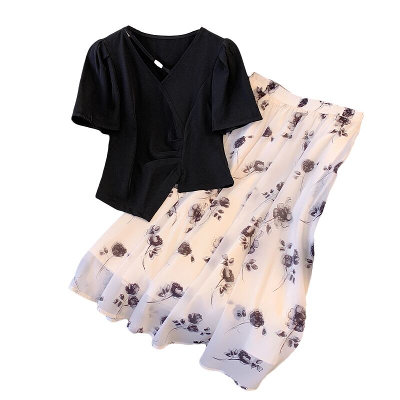 プラスサイズの婦人服 2023 ファットシスター夏服新デザインスーツプリーツトップインクスカート 2 点セット 大きめサイズ サマー 夏物 8884131484329597