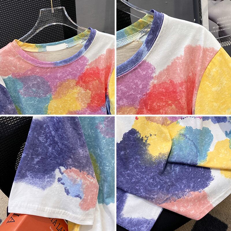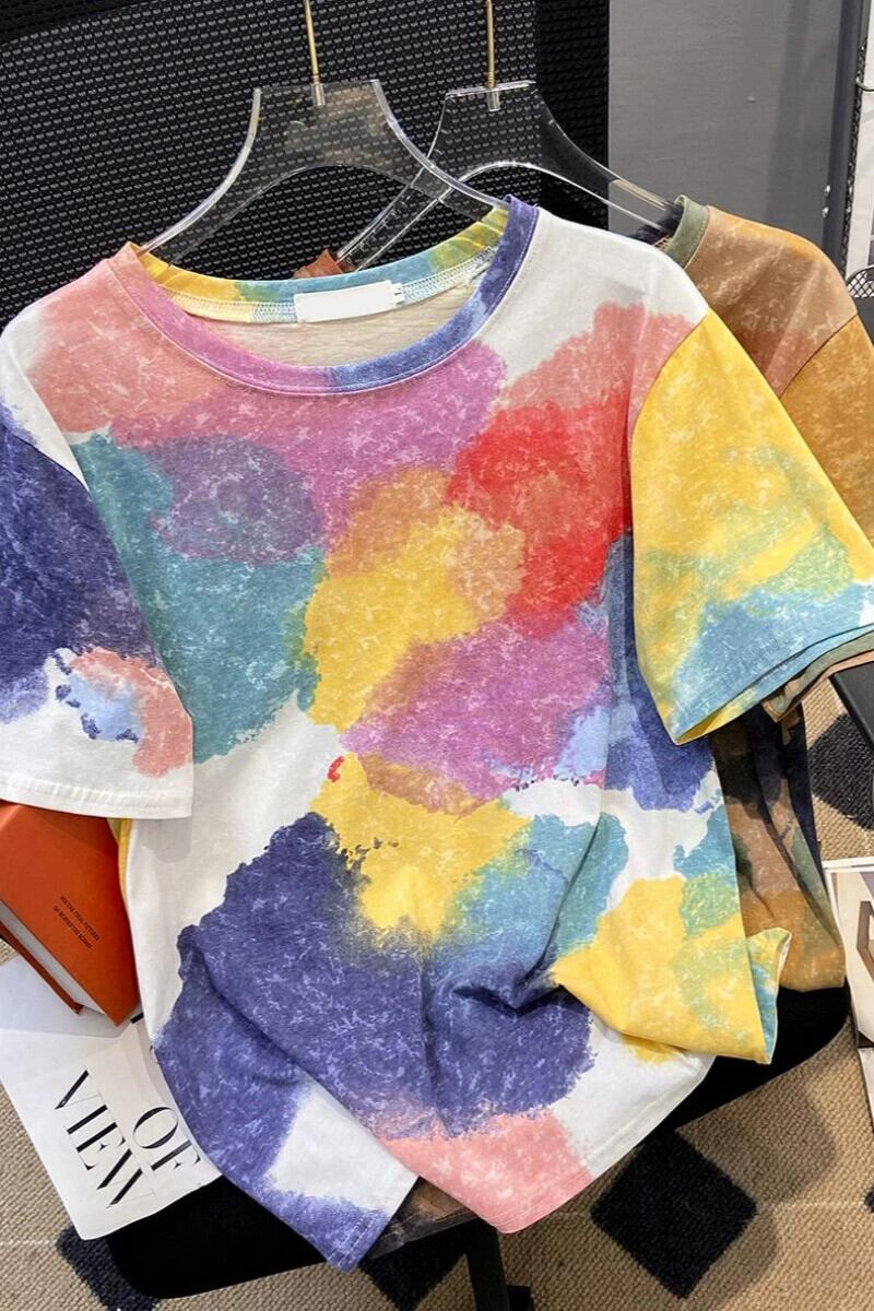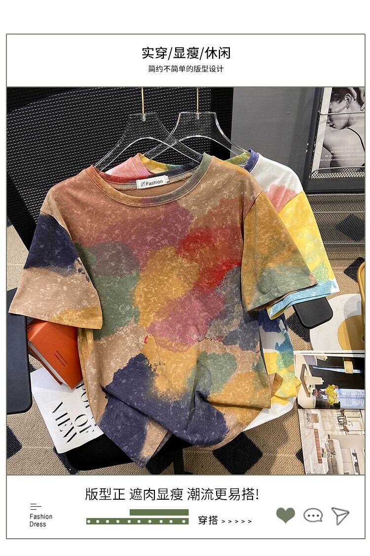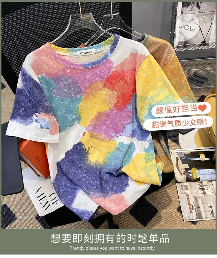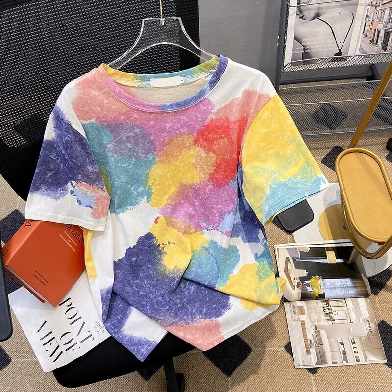 プラスサイズの婦人服 2023 夏服太い新しい絞り染め半袖 T シャツのデザインゆるい西洋スタイルの年齢を減らすトップ 大きめサイズ サマー 夏物 Tシャツ 8884123707675184