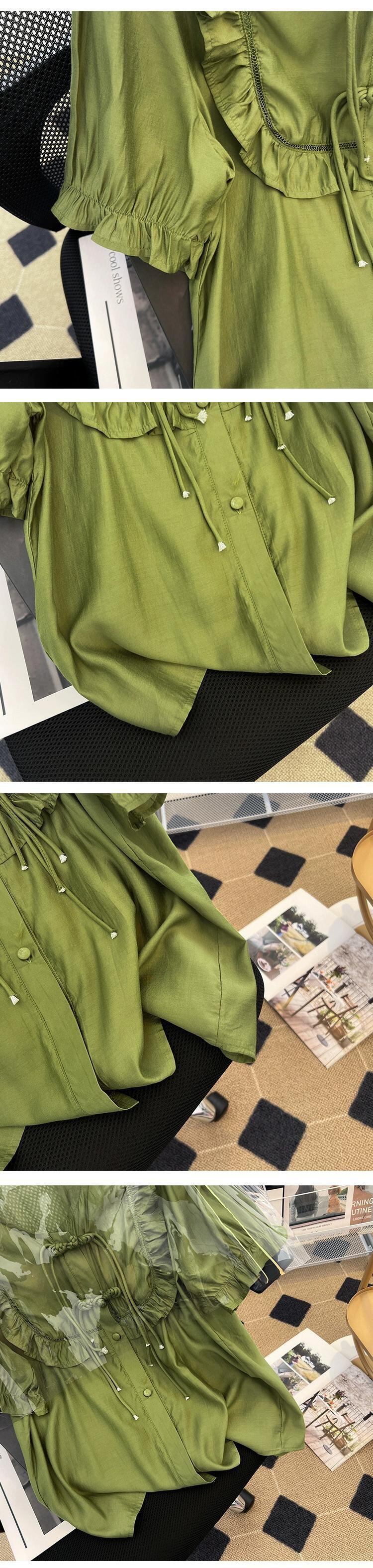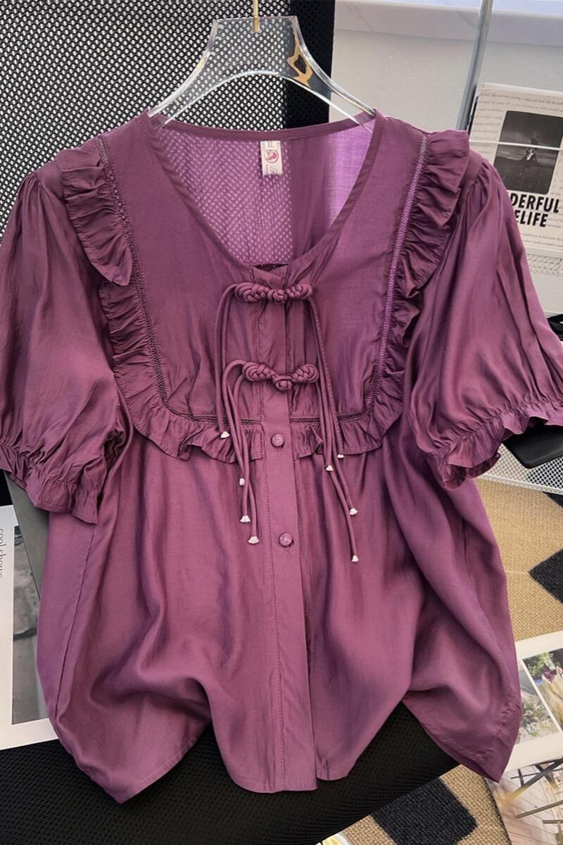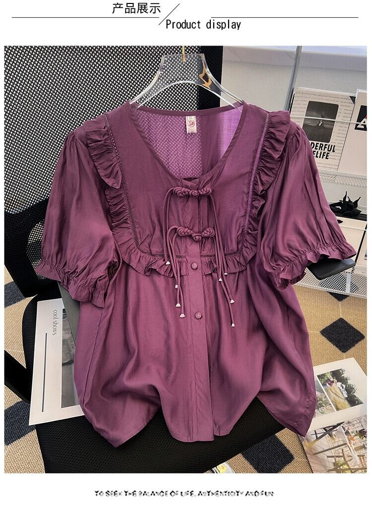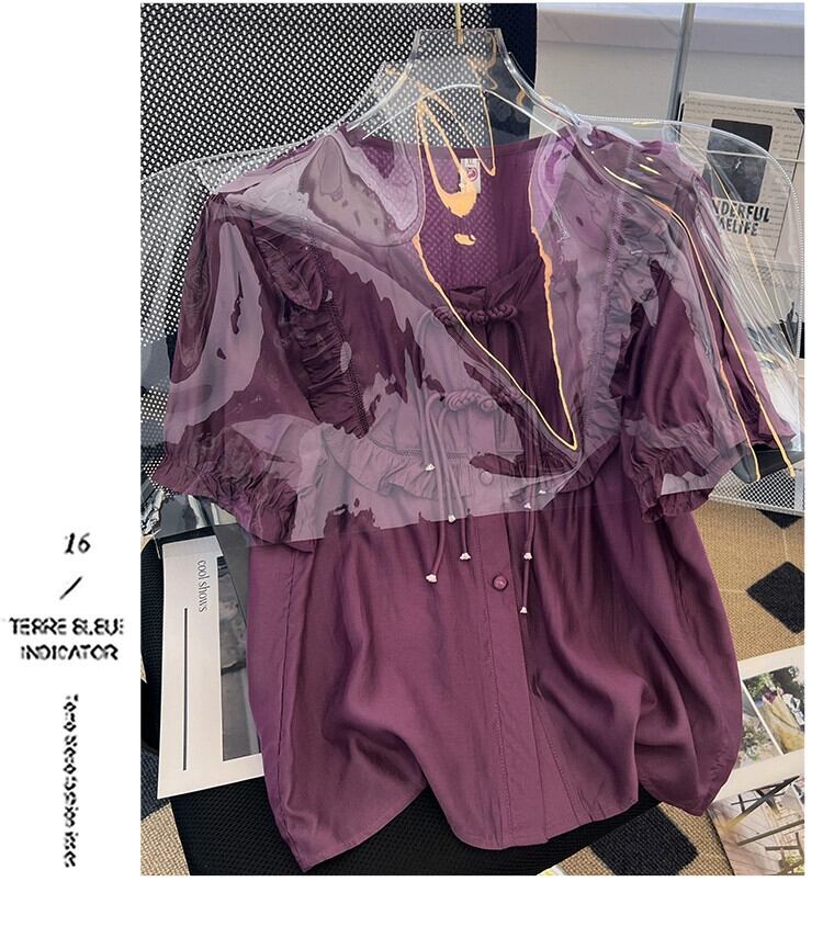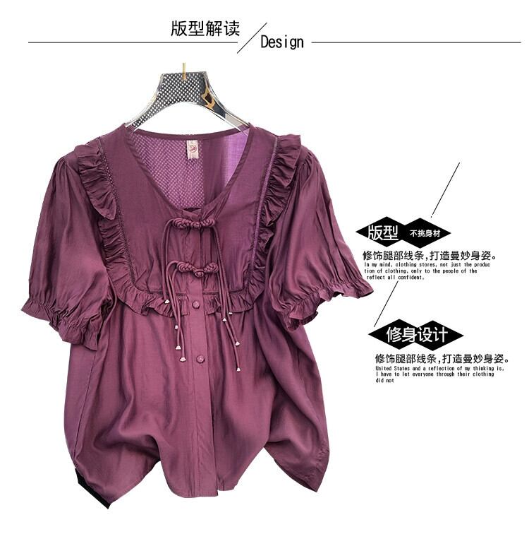 プラスサイズの婦人服 2023 脂肪姉妹夏の新しいスタイルのレトロな半袖シャツルーズでシックな痩身シャツトップ 大きめサイズ サマー 夏物 8884136790301418