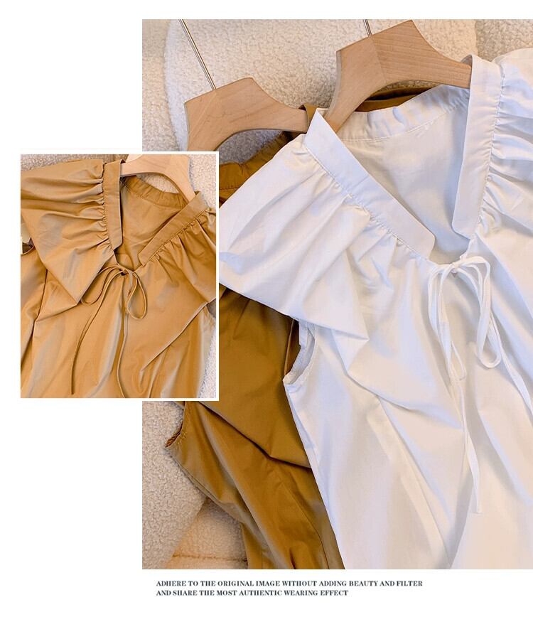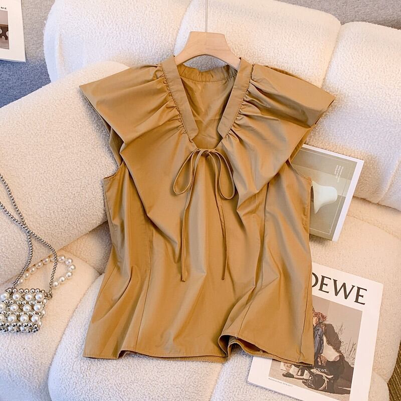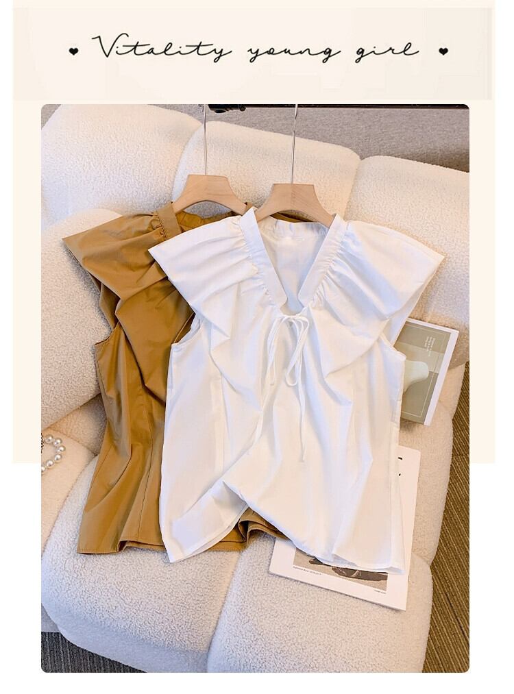 プラスサイズの婦人服 2023 脂肪姉妹夏服新しい V ネックネクタイノースリーブシャツファッショナブルなスタイルのフライングスリーブシャツ 大きめサイズ サマー 夏物 Vネック 888411766411997