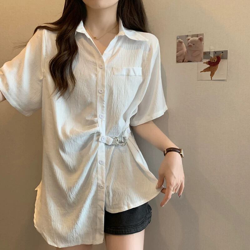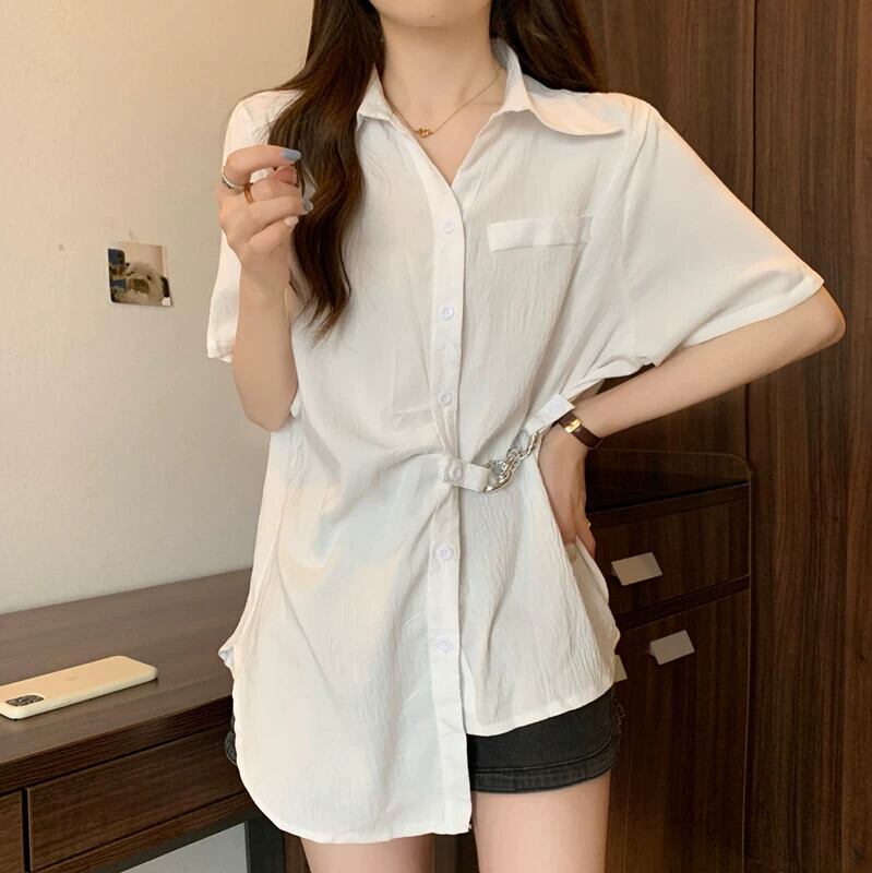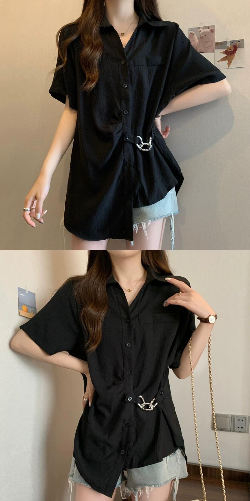 プラスサイズの女性の 2023 夏服、ゆったりとしたデザイン、スリムでお腹をカバーするトップスを備えた、太くてエレガントで高級なシャツ 大きめサイズ サマー 夏物 888417643358649