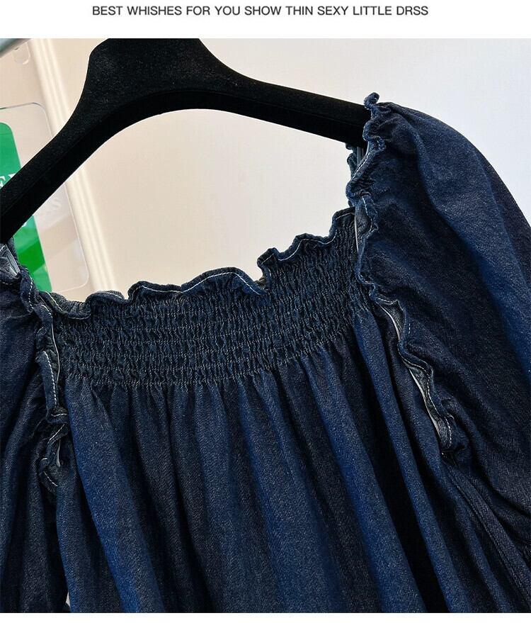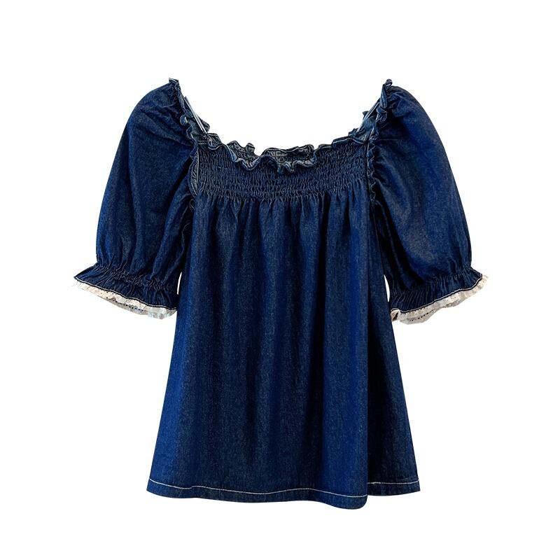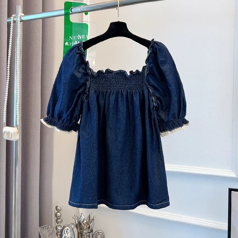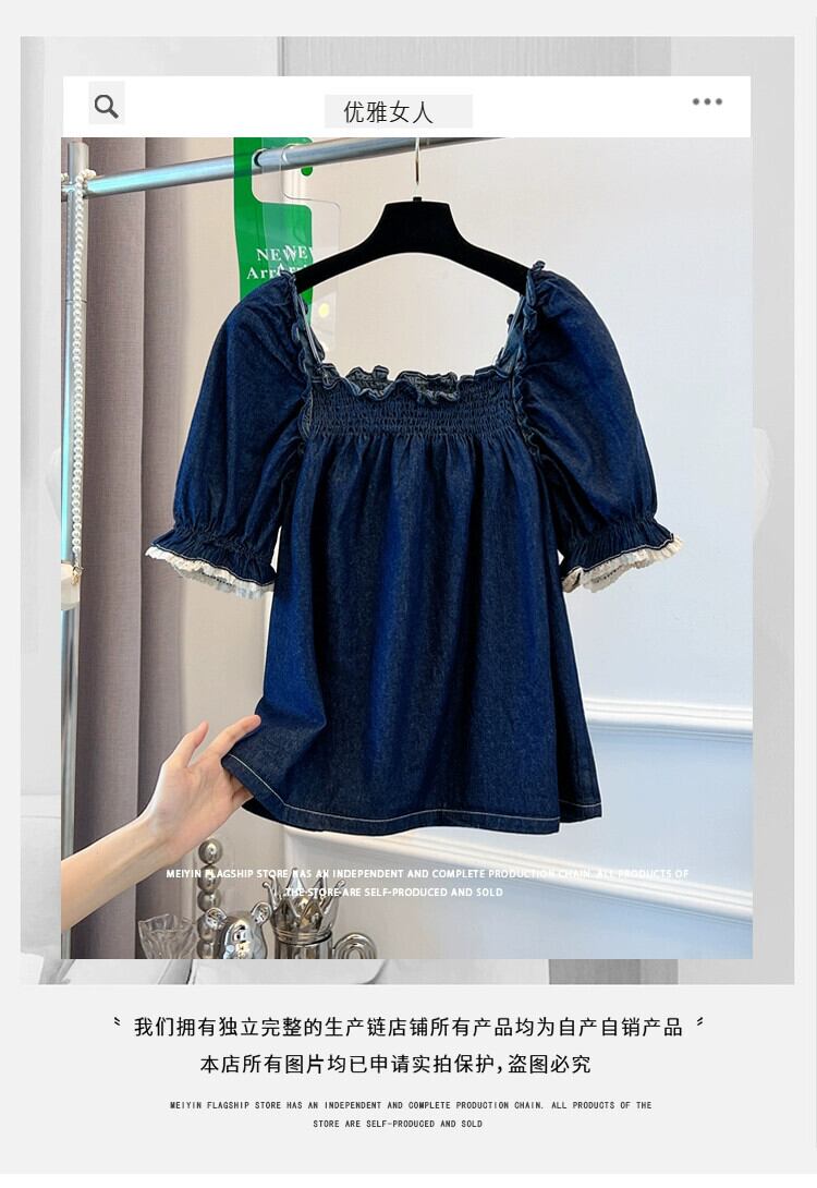 プラスサイズの婦人服 2023 トレンディな夏の新しいファットスクエアカラーデニムシャツデザインニッチ年齢を軽減するショートトップ 大きめサイズ サマー 夏物 スクウェア 8884140451147798