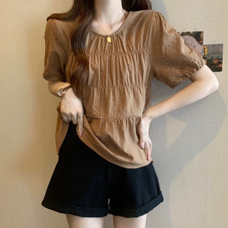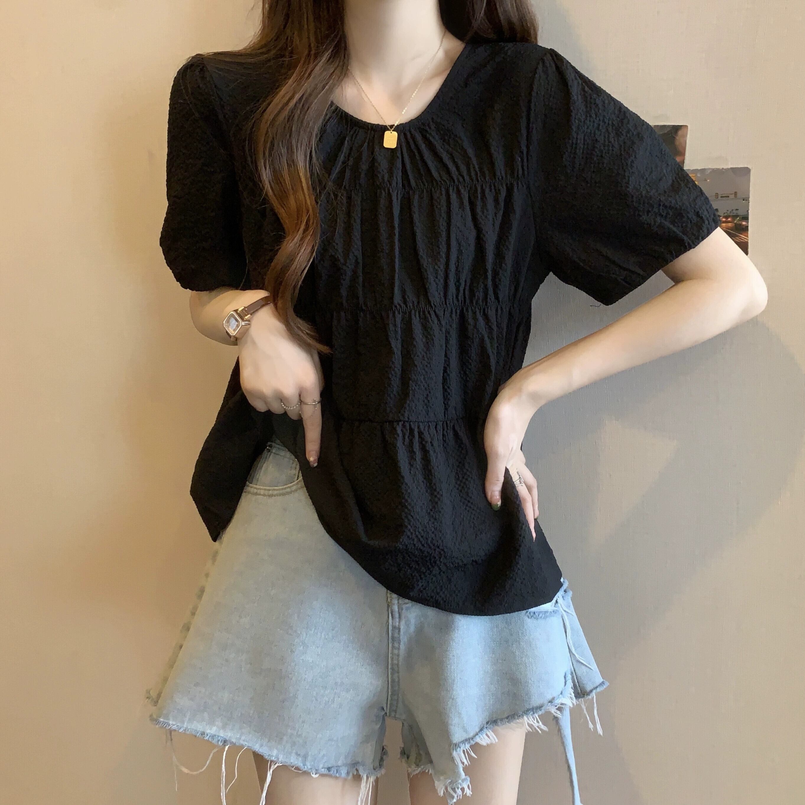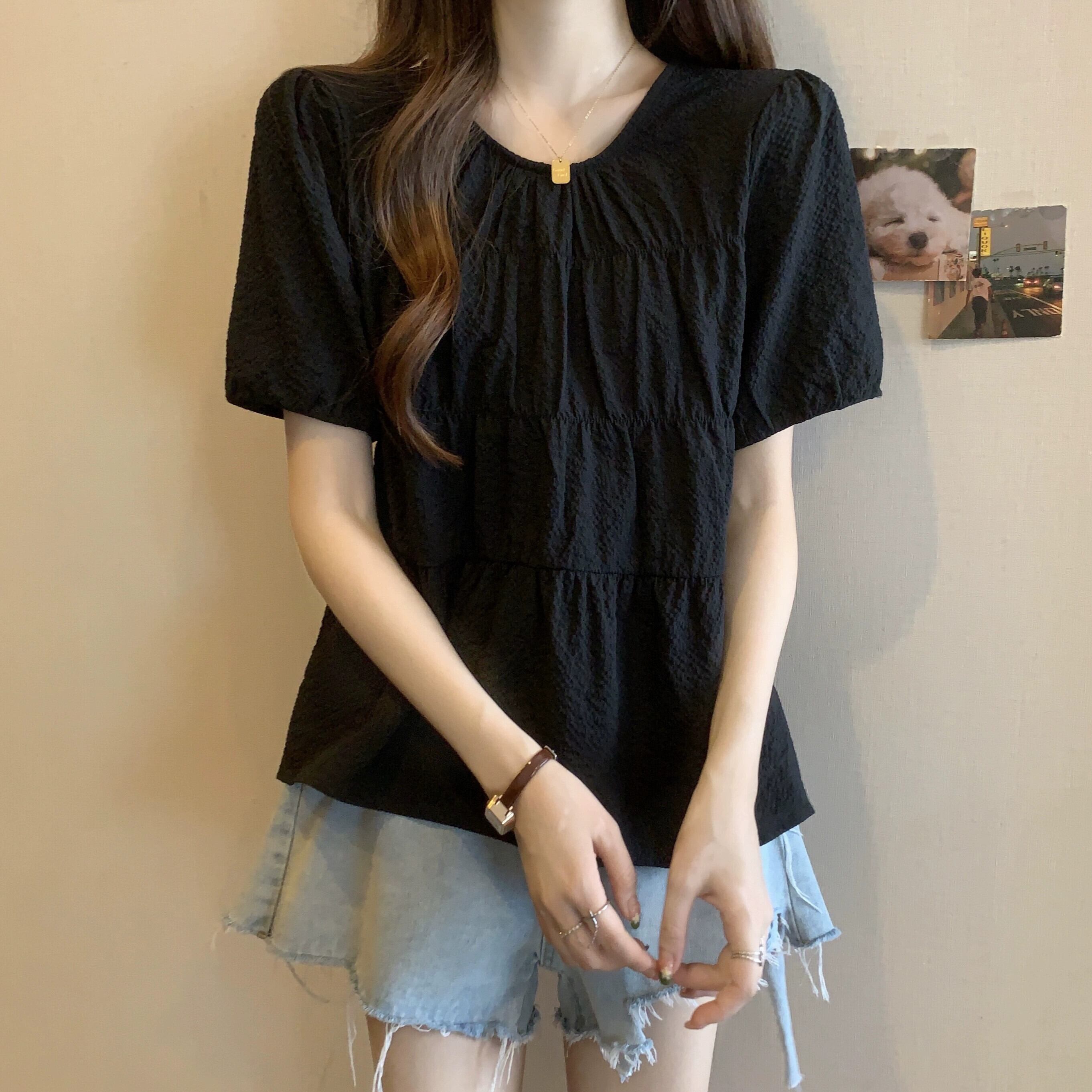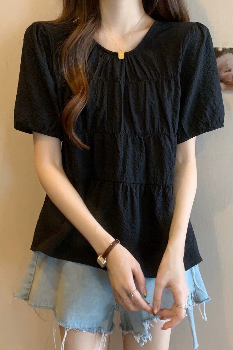 大きいサイズ右肩シフォン半袖Tシャツ夏太り見えスリム&ゆるめお腹カバーデザイン年齢軽減トップス 大きめサイズ サマー 夏物 8884166824956380