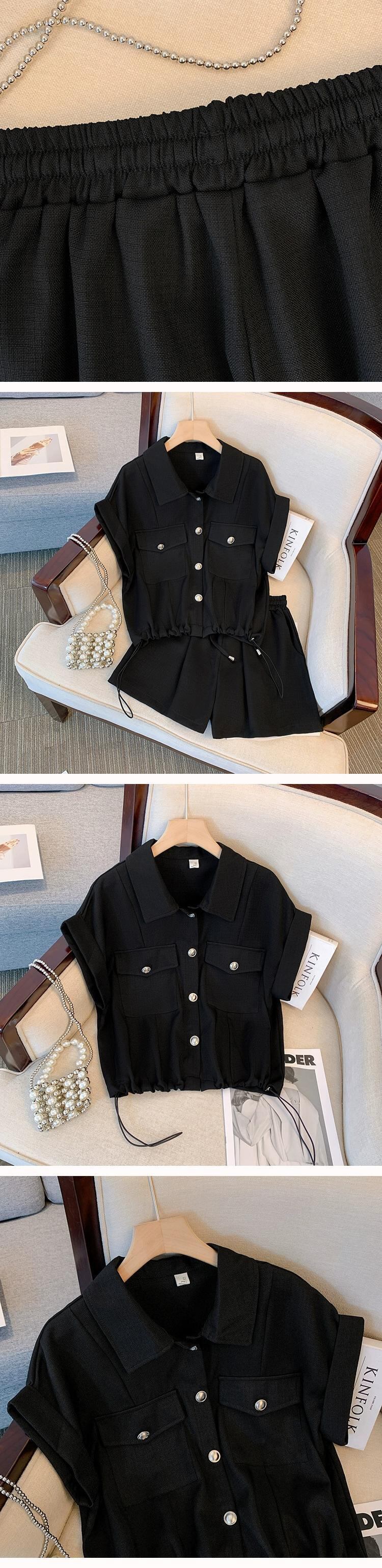 プラスサイズの婦人服 2023 ファットシスター夏新デザインスーツ多用途年齢を減らすカジュアルトップスとショーツ 2 点セット 大きめサイズ サマー 夏物 ブルマー 8884162719926760