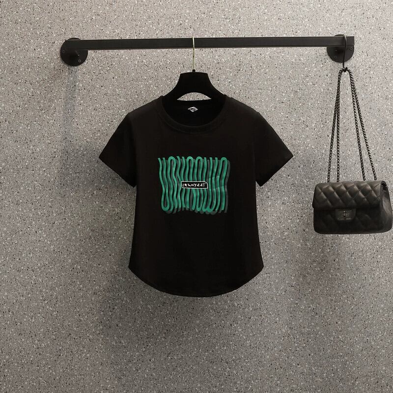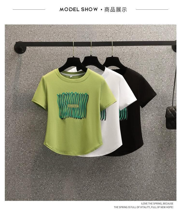 プラスサイズの女性の 2023 ファットシスター夏服新しいファッション多用途年齢削減プリントラウンドネック半袖トップス tシャツ 大きめサイズ サマー 夏物 Oネック 8884153074151712