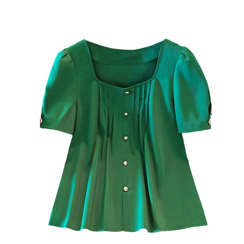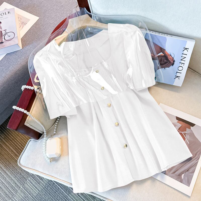 プラスサイズの女性の 2023 夏服ファットシスター年齢削減フレンチ半袖シャツパフスリーブ多用途トップ ショート ハーフスリーブ 大きめサイズ サマー 夏物 888415946480837