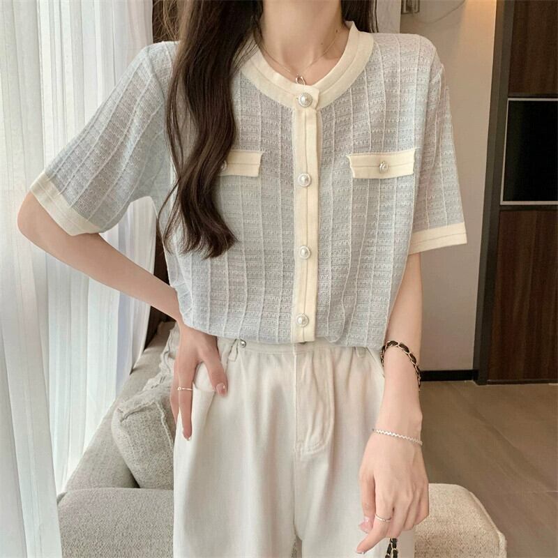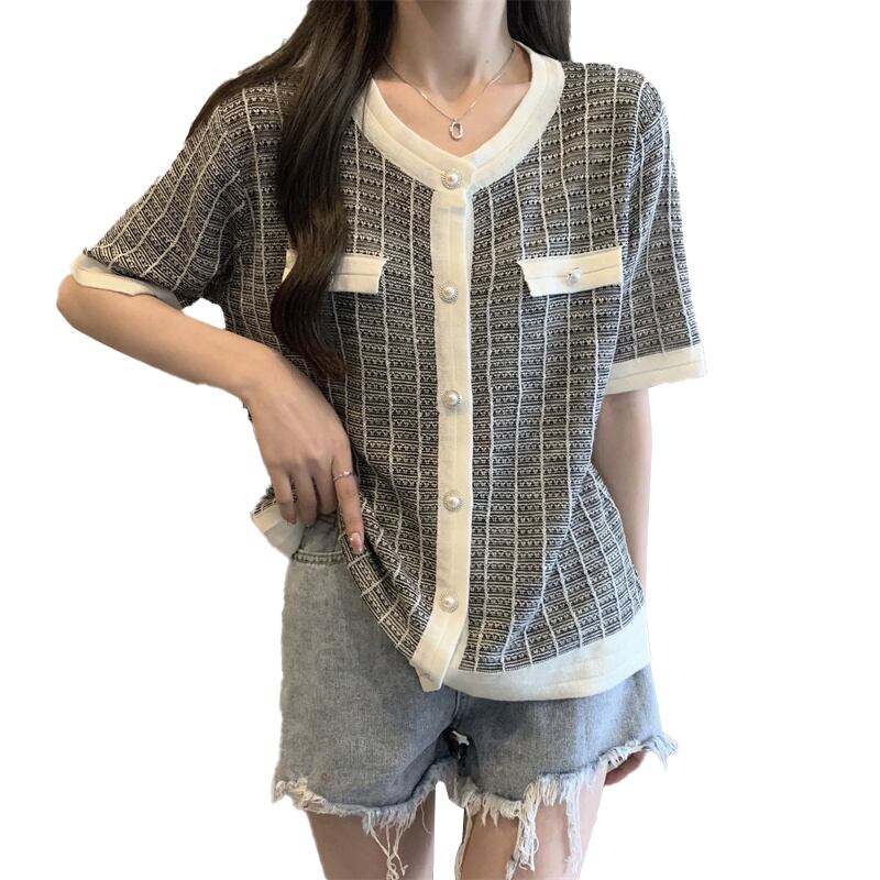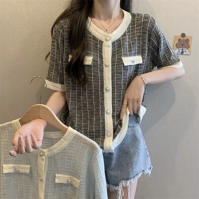 プラスサイズの婦人服 2023 ファットシスター夏服新しいニット tシャツ半袖ファッショナブルなデザインシックな痩身トップ 大きめサイズ サマー 夏物 888417872399546