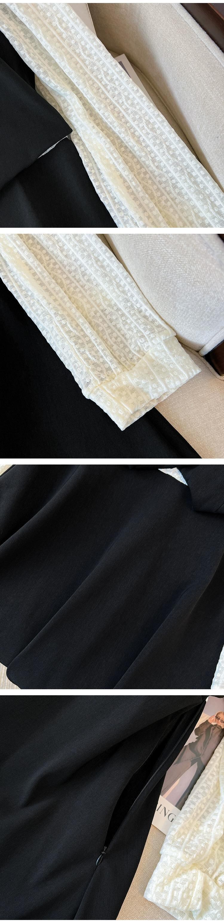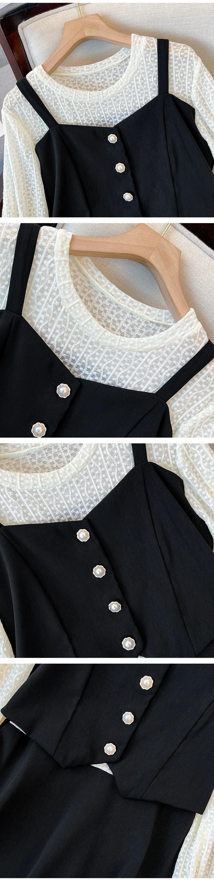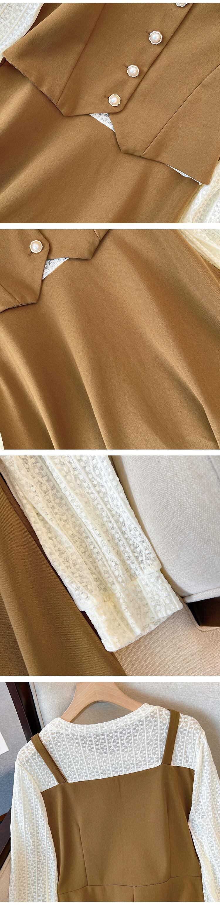 プラスサイズの婦人服 2023 秋服脂肪ニッチフランスの気質偽ツーピース A ラインスカートレース痩身ドレス 大きめサイズ オータム 秋物 Aライン 888413120794869