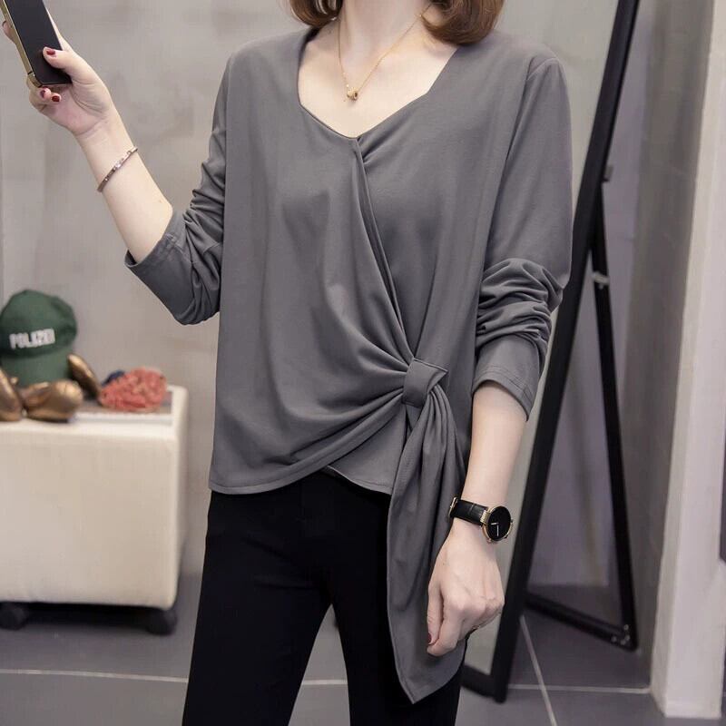 プラスサイズの婦人服 2023 流行の秋の新しい脂肪痩身ファッションハイエンドトップスデザイン不規則な T シャツ 大きめサイズ オータム 秋物 Tシャツ 888416589736302