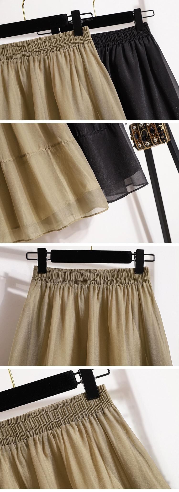 プラスサイズの女性の 2023 トレンディな夏のスタイルファットシスターバージョン多用途真珠光沢のある砂スカートスリムスカート A ラインスカート 大きめサイズ サマー 夏物 Aライン パール 8884124149479546
