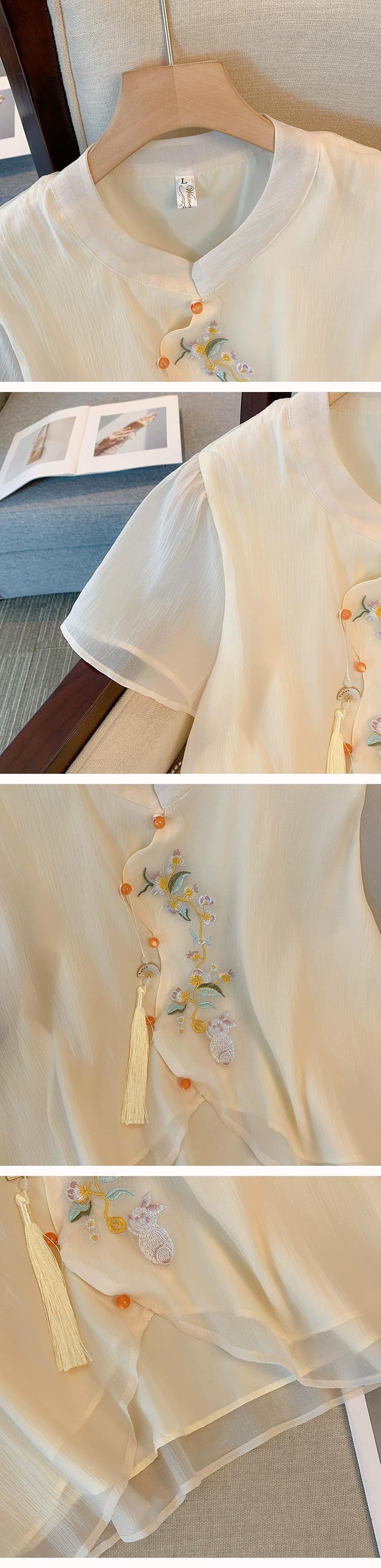 プラスサイズの女性の 2023 ファットシスター夏服中国風国家スタイルスーツシャツシフォンショートスカート年齢削減 2 点セット 大きめサイズ サマー 夏物 8884188121700343