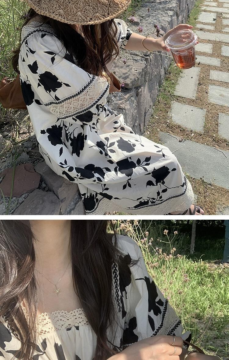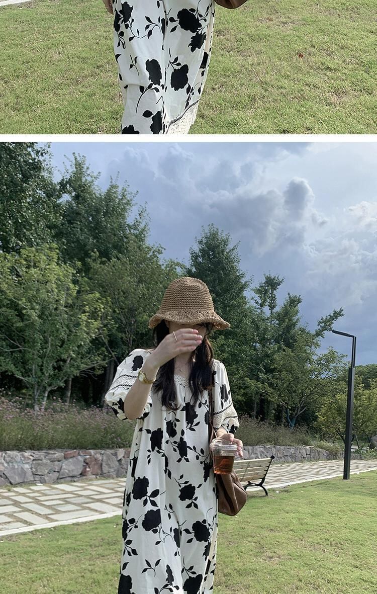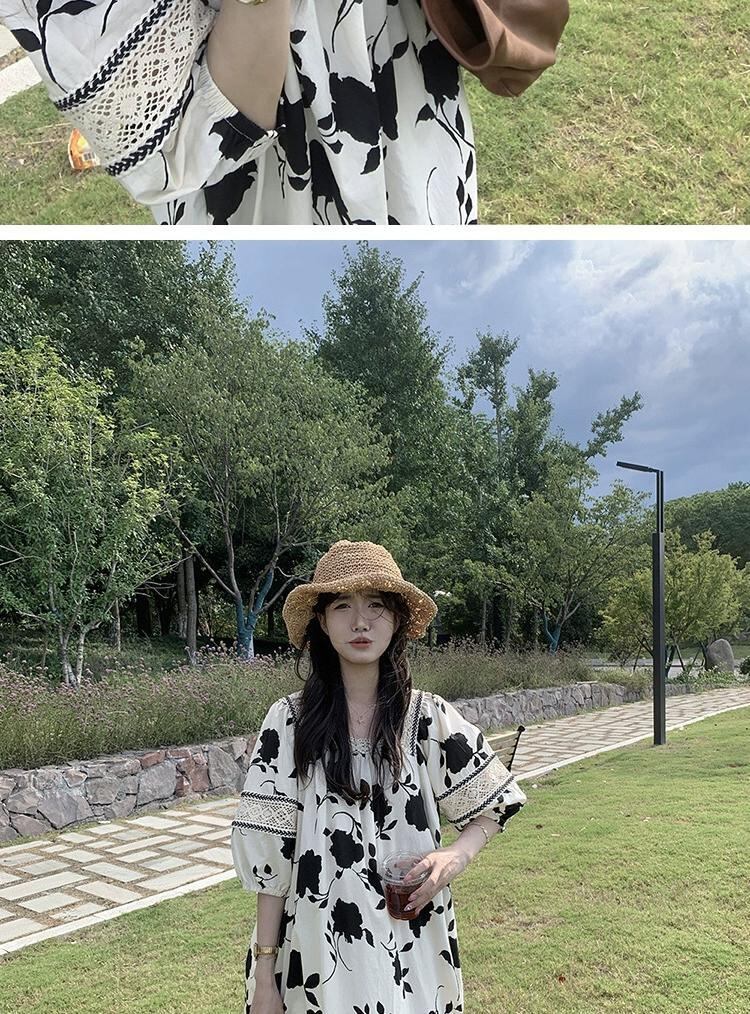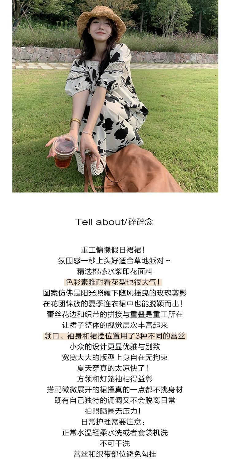 プラスサイズの婦人服 2023 流行の夏の新しい脂肪姉妹ファッションルーズプリントスカートレーススプライシングスクエアネックドレス 大きめサイズ サマー 夏物 スクウェア 8884184236017780