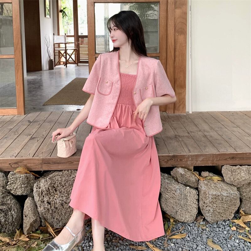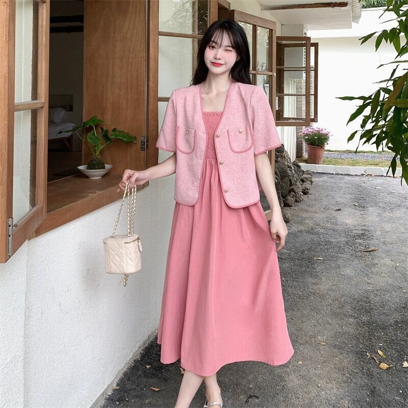 プラスサイズの婦人服 2023 脂肪姉妹夏の新ファッションスーツショートコートサスペンダースカートハイエンド痩身 2 点セット 大きめサイズ サマー 夏物 8884123236341720