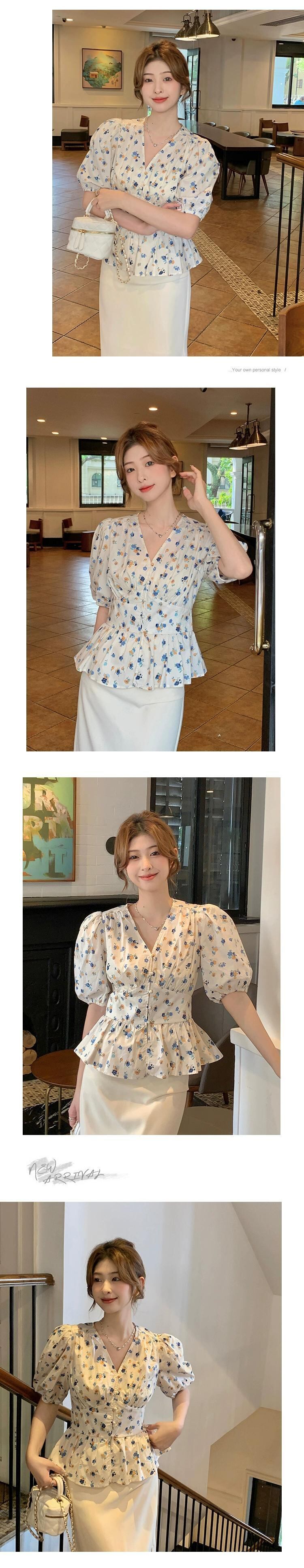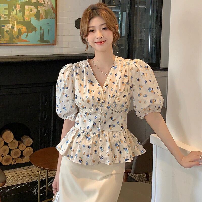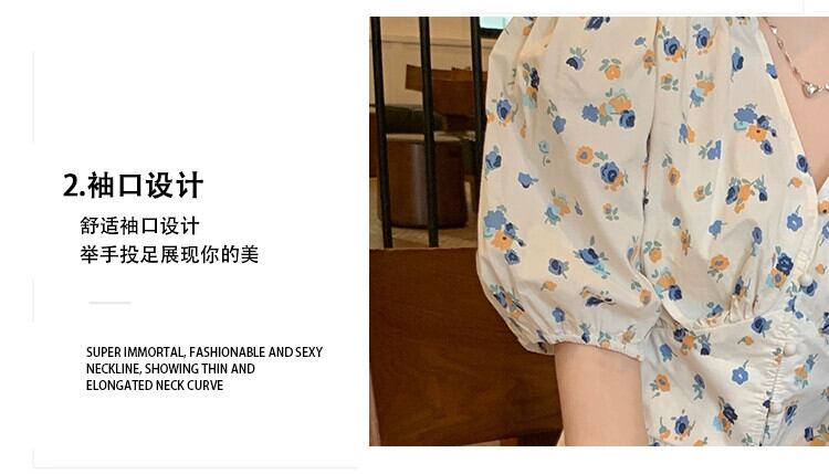 プラスサイズの婦人服 2023 トレンディな夏の新しいスタイルのファットフレンチフローラルハイエンドトップパフスリーブデザインシャツ 大きめサイズ サマー 夏物 花柄 8884113933584442