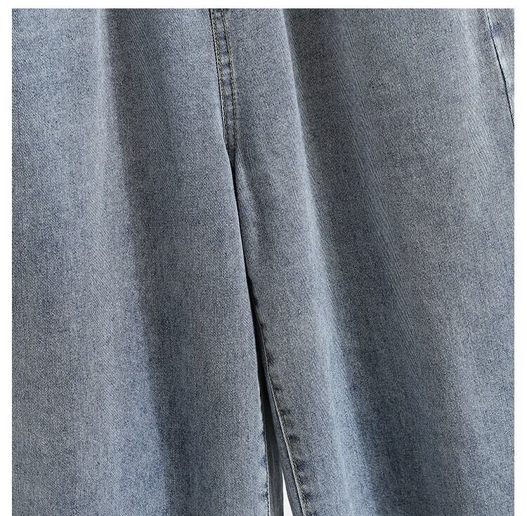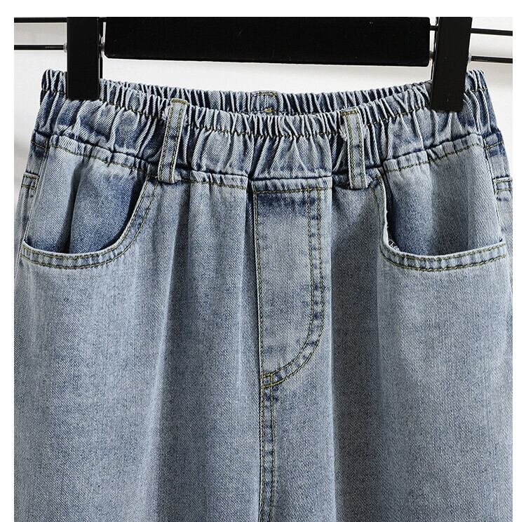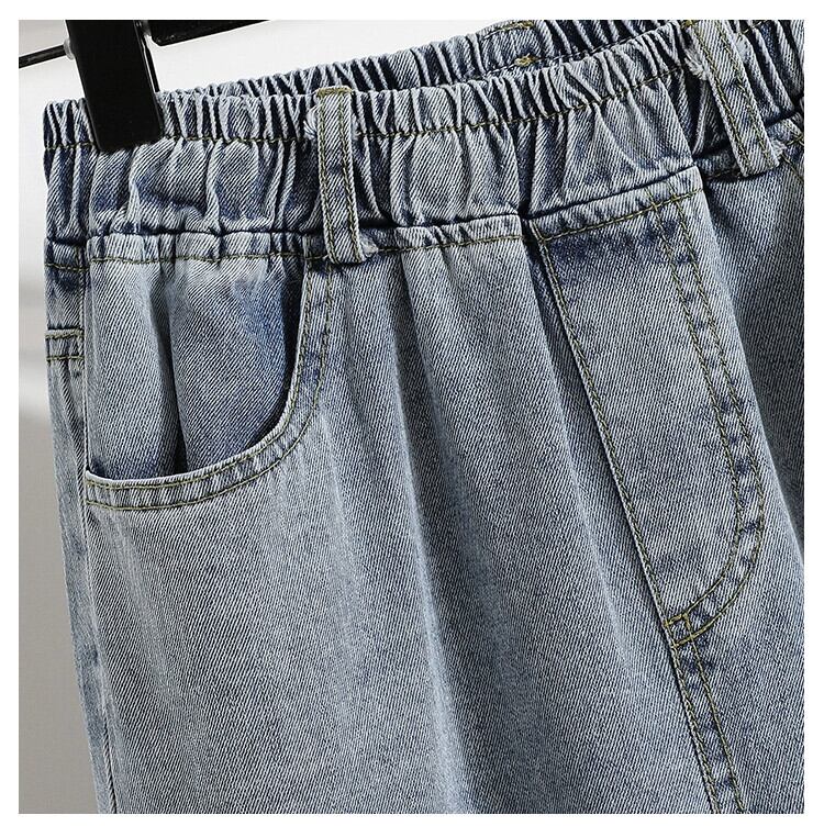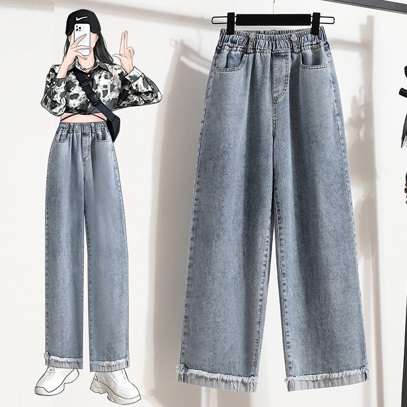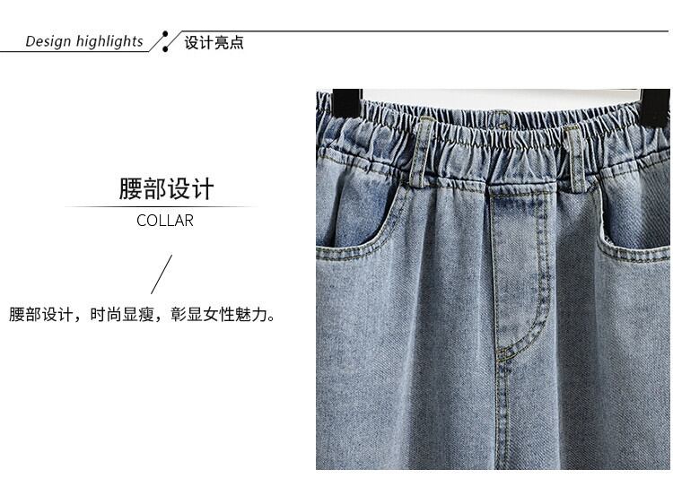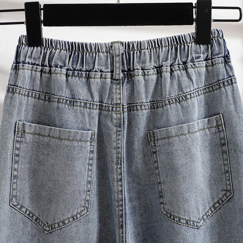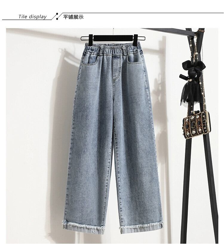 2023 新しい夏と秋のプラスサイズの婦人服脂肪痩身ハイウエスト弾性ワイドレッグパンツロールヘムデニム 9 点パンツ ハイウェスト エラスティック 伸縮 大きめサイズ サマー 夏物 オータム 秋物 ワイドパンツ 8884177810553119