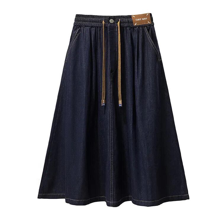 プラスサイズの女性の 2023 ファットシスター夏服弾性ウエストベルトデニムプリーツミッドレングススカートプリーツ大きな裾スカート エラスティック 伸縮 大きめサイズ サマー 夏物 ハーネス 8884189455967625