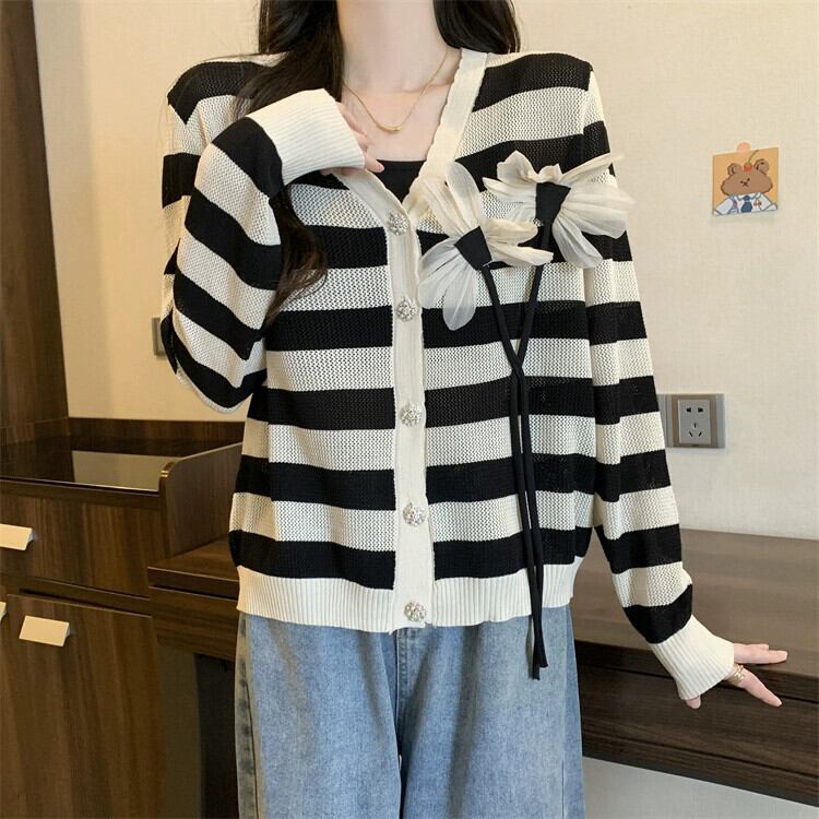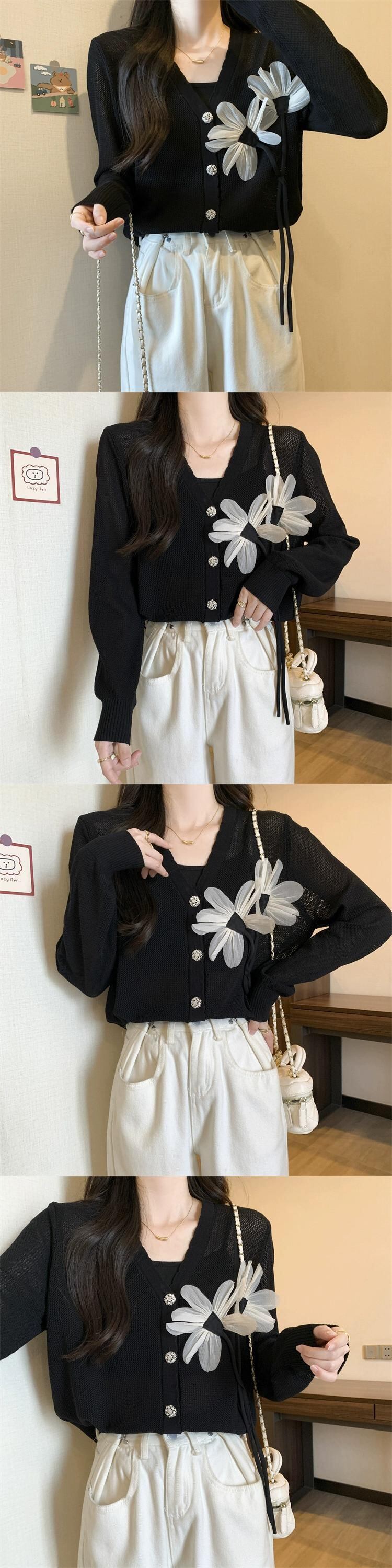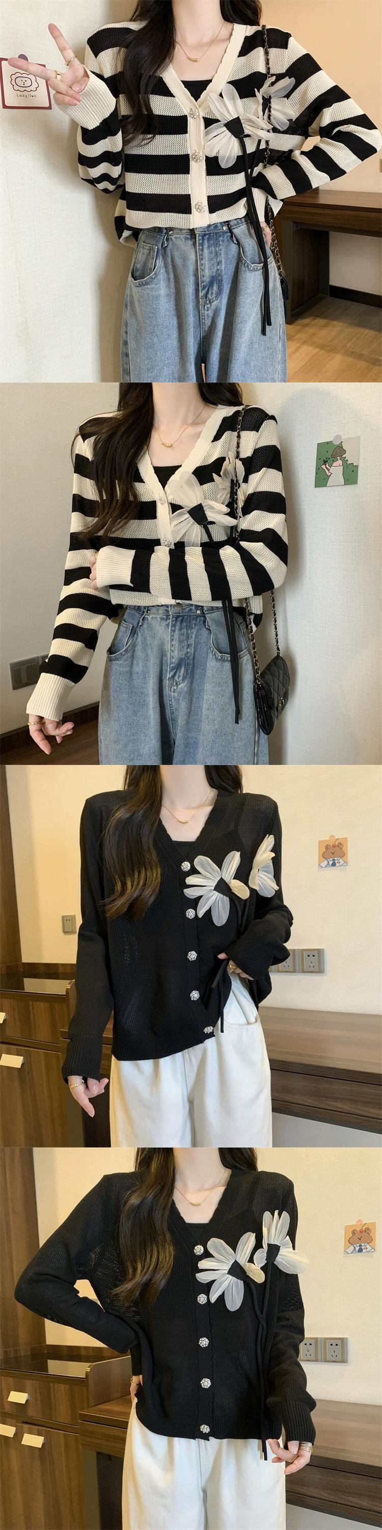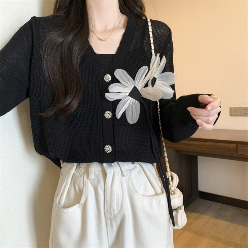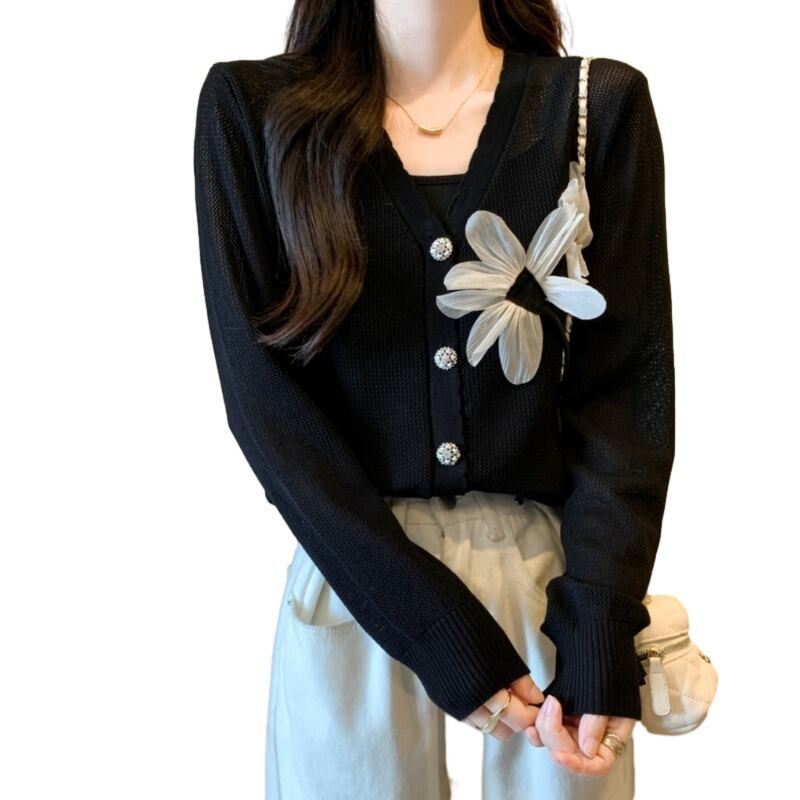 プラスサイズの婦人服秋 2023 スタイルのデザイン立体フラワー V ネックルーズでスリムなニットセータートレンド 大きめサイズ オータム 秋物 Vネック フラワーデザイン 8884114145135636