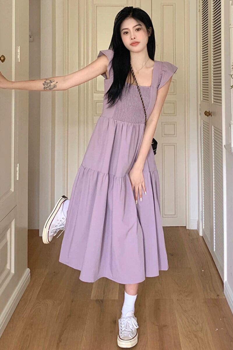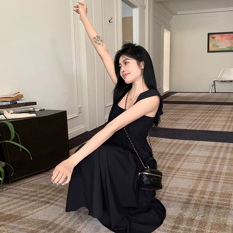 プラスサイズの婦人服 2023 流行の夏の新しいファットシスターフレンチニッチドレスティーブレイクヘップバーンスタイル膝丈スカート 大きめサイズ サマー 夏物 8884111764509654