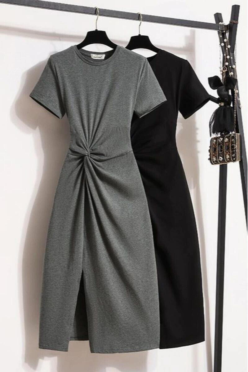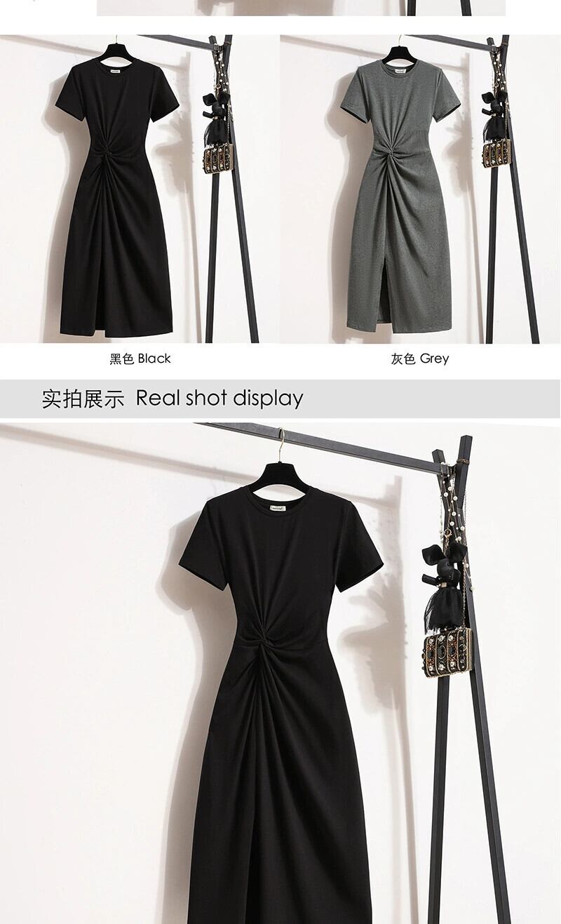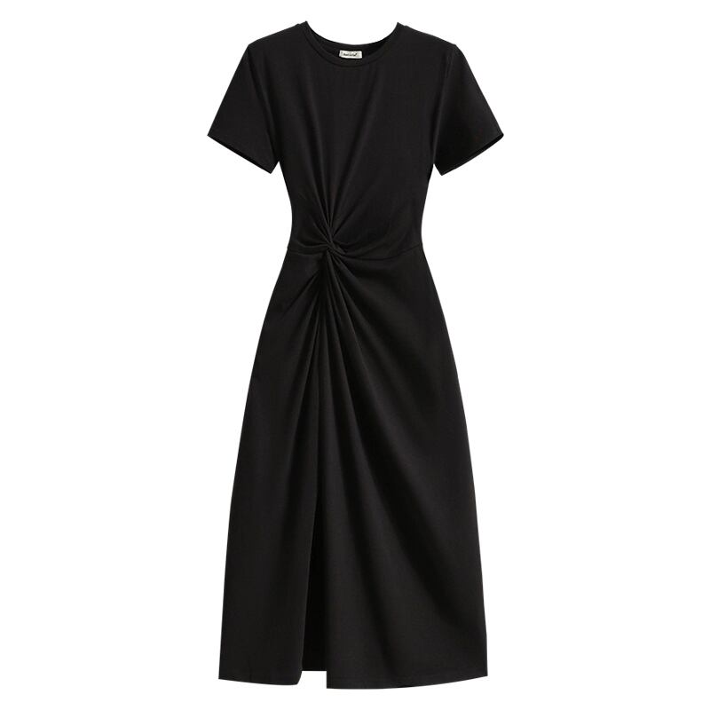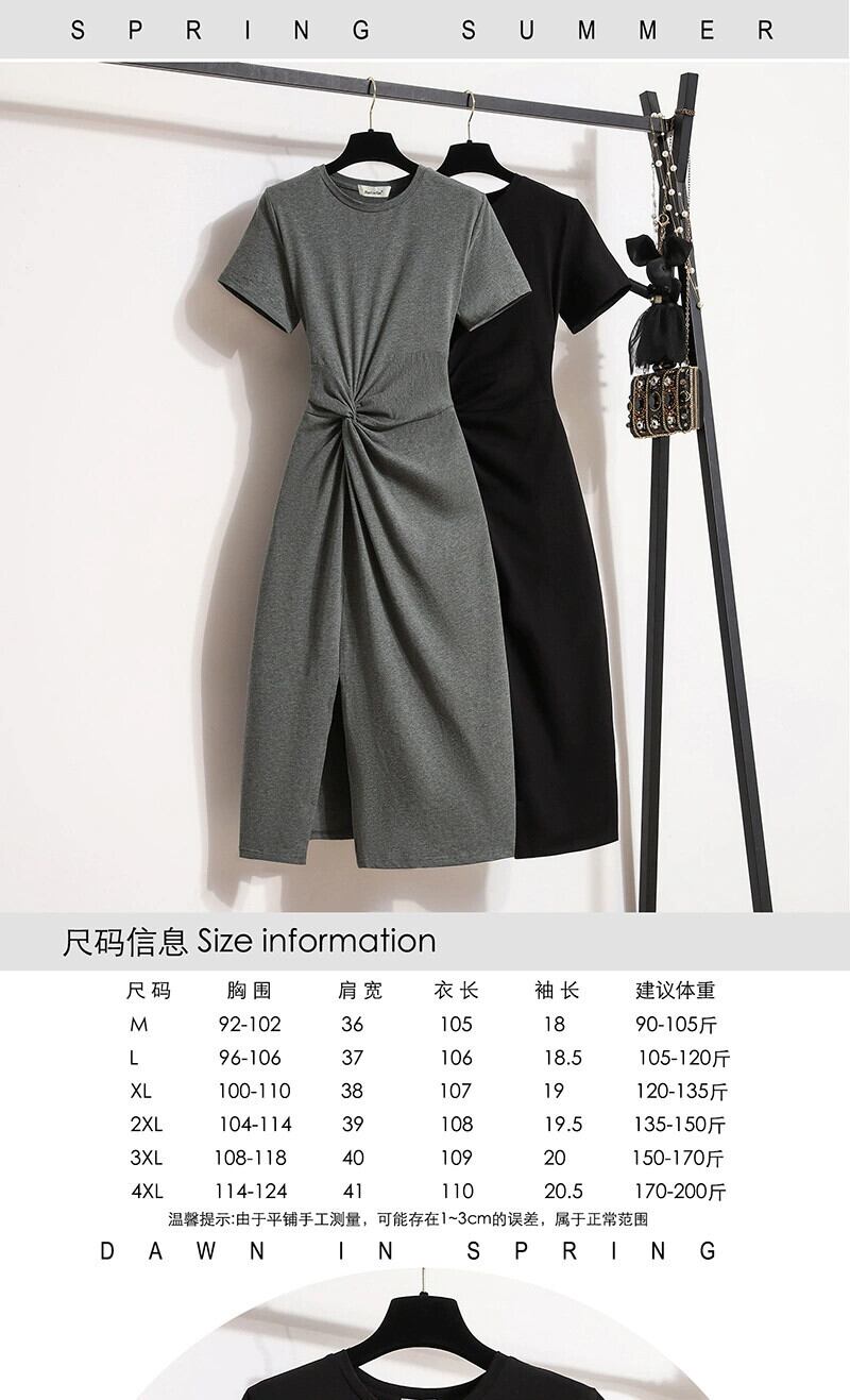 プラスサイズの女性の 2023 夏の新しいスタイルのファットスリットスリムウエストプリーツ不規則なカジュアルドレス 大きめサイズ サマー 夏物 888416773113387