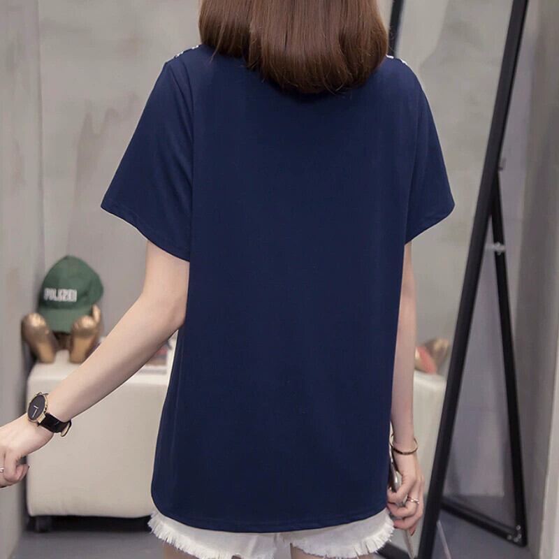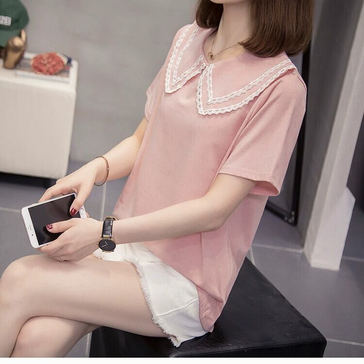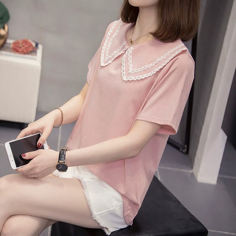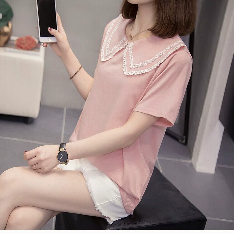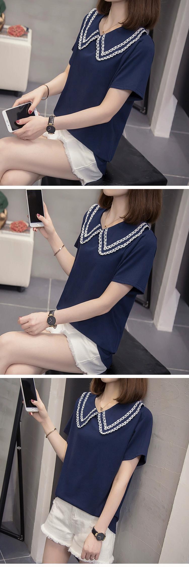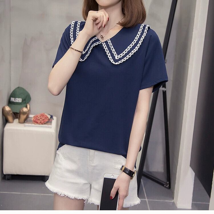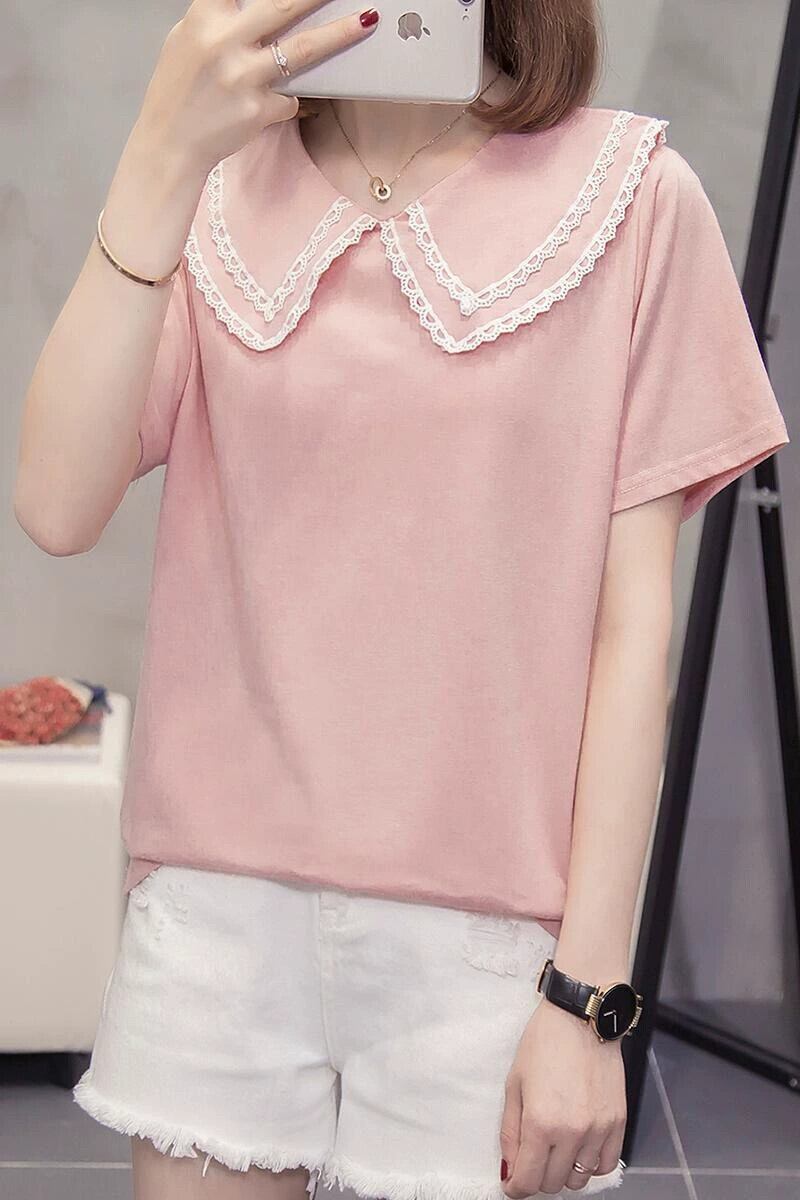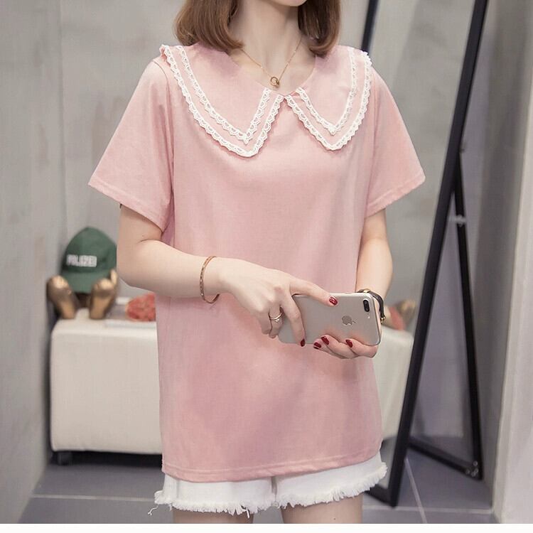 プラスサイズの女性の 2023 夏の新スタイル脂肪姉妹ルーズ痩身人形襟半袖シックな肌カバー Tシャツ女性 大きめサイズ サマー 夏物 8884169803882342