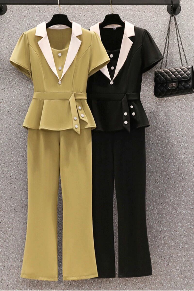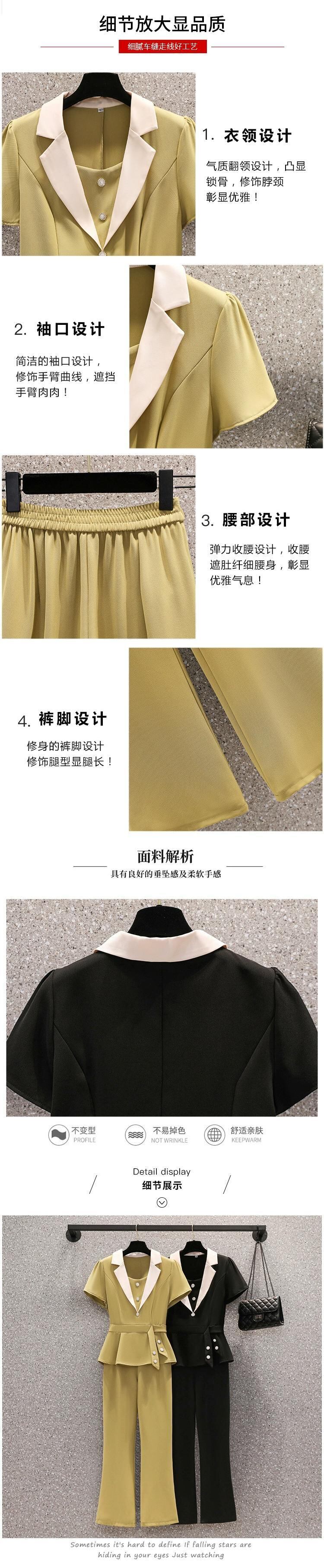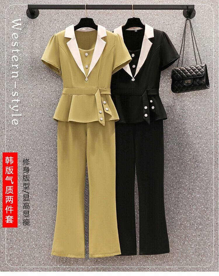 プラスサイズの婦人服 2023 流行の夏の新しいファットシスターファッション年齢軽減スーツ半袖トップスカジュアルパンツツーピーススーツ 大きめサイズ サマー 夏物 8884172473216140