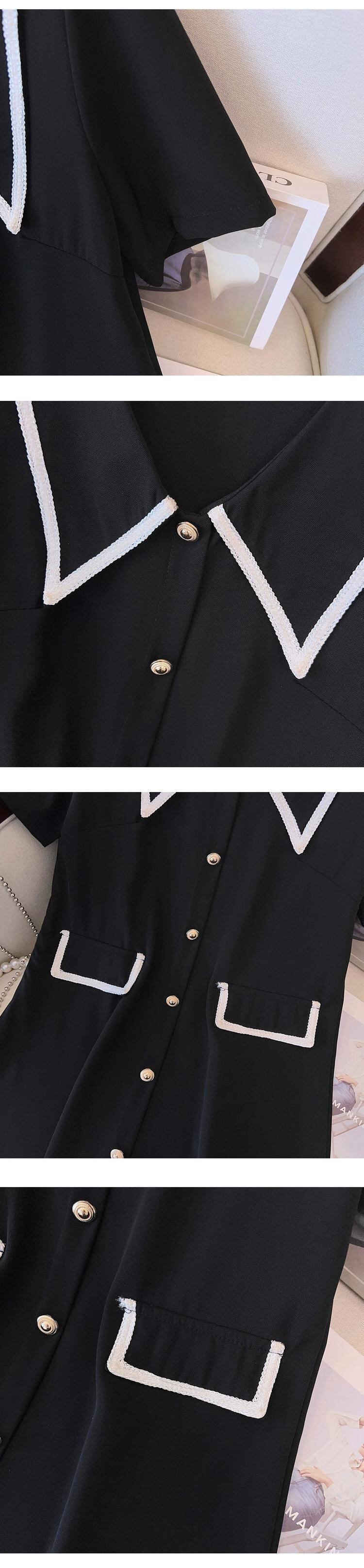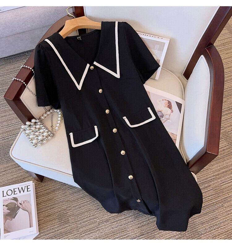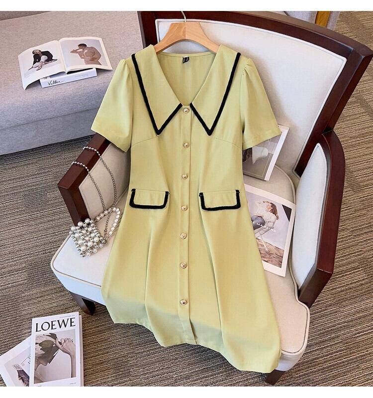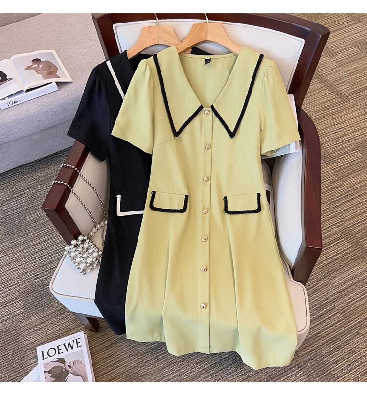 プラスサイズの婦人服 2023 夏服脂肪の新しいスタイルフレンチスタイルの人形の襟 a ラインスカート西洋スタイルのスリムドレス 大きめサイズ サマー 夏物 Aライン 888414144921485