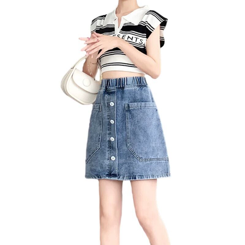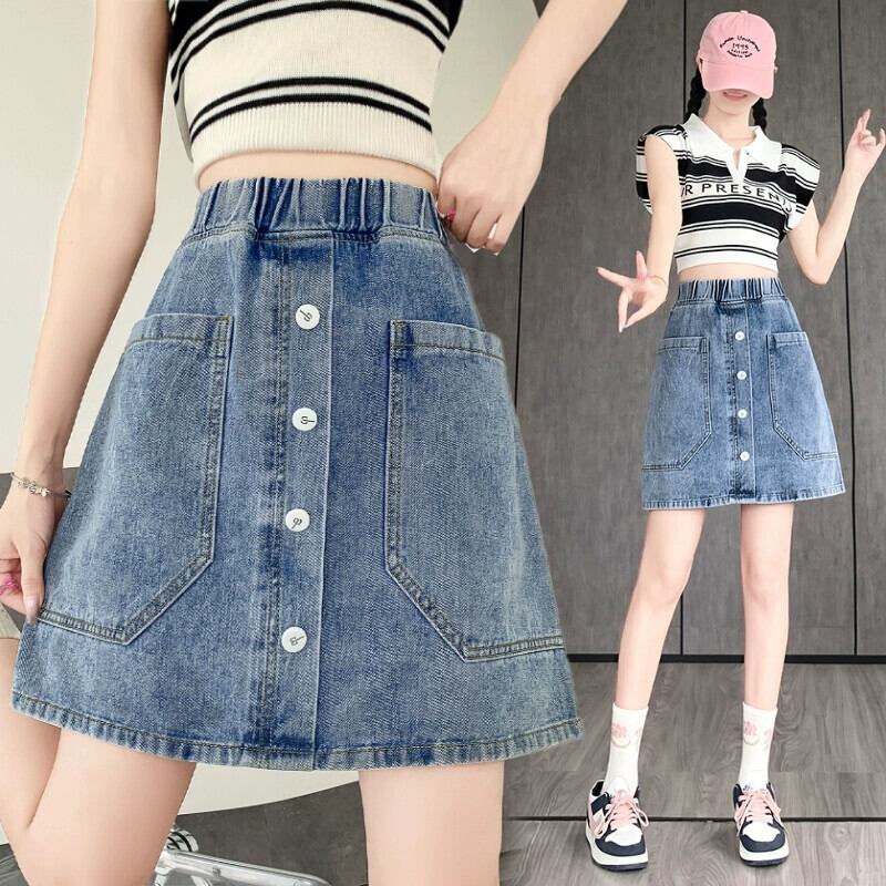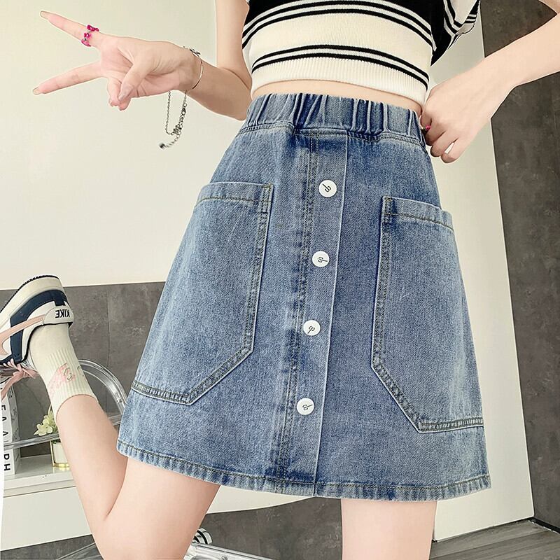 プラスサイズの女性の 2023 夏服脂肪年齢、気質、ボタン付きハイウエストスカート、ヒップカバーファッションデニムショートスカート ハイウェスト 大きめサイズ サマー 夏物 8884137008902101