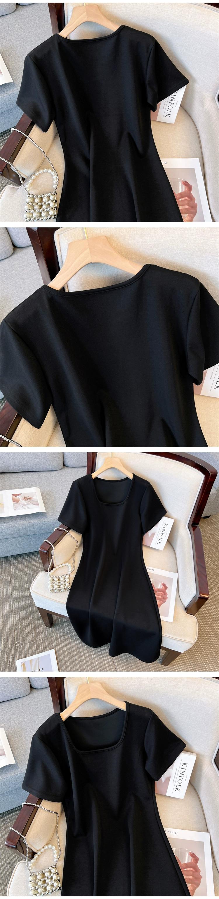 プラスサイズの婦人服 2023 夏服脂肪新しいロングとショートスカート気質右肩 U 字型襟スリムドレス 大きめサイズ サマー 夏物 スリム 888419072001071