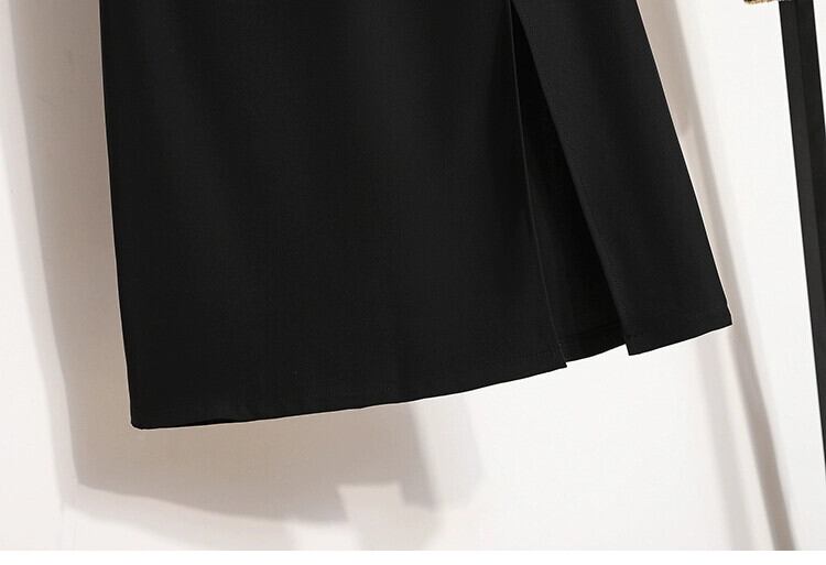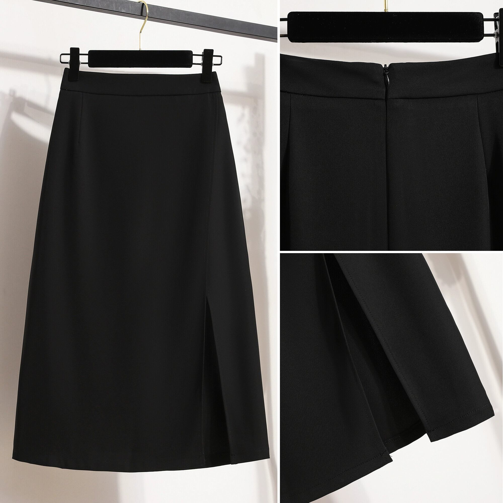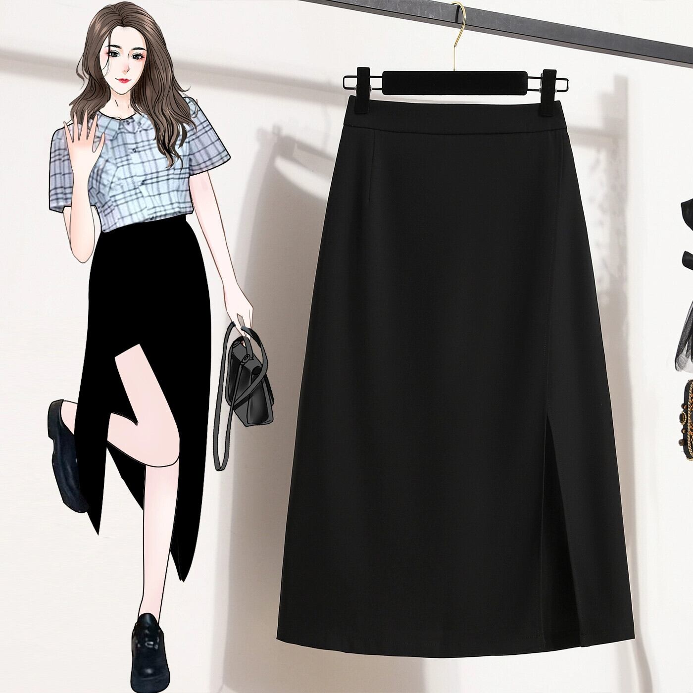 プラスサイズの婦人服 2023 脂肪姉妹夏の新ファッションソリッドカラースリット A ラインミッドレングススカート痩身ハイウエストスカート ハイウェスト 大きめサイズ サマー 夏物 Aライン 8884164000626484