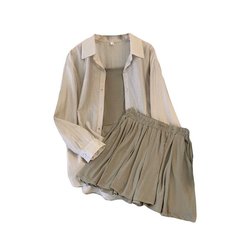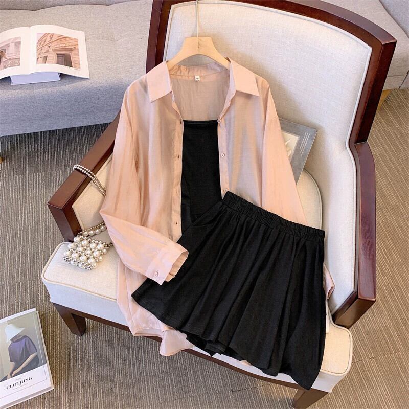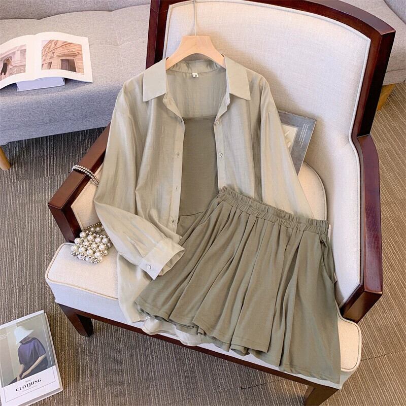 プラスサイズの女性の 2023 夏服脂肪姉妹年齢削減日焼け止めトップキャミソールウエストショーツ 3 点セット 大きめサイズ サマー 夏物 ブルマー 8884155154840644