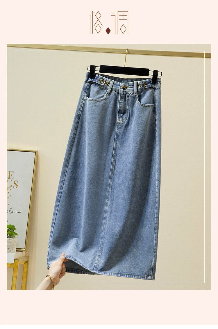 プラスサイズの婦人服 2023 夏服脂肪新しいハイウエストスリットデニムスカートミッドレングス a ラインスカート女性 ハイウェスト 大きめサイズ サマー 夏物 Aライン 8884131734908561
